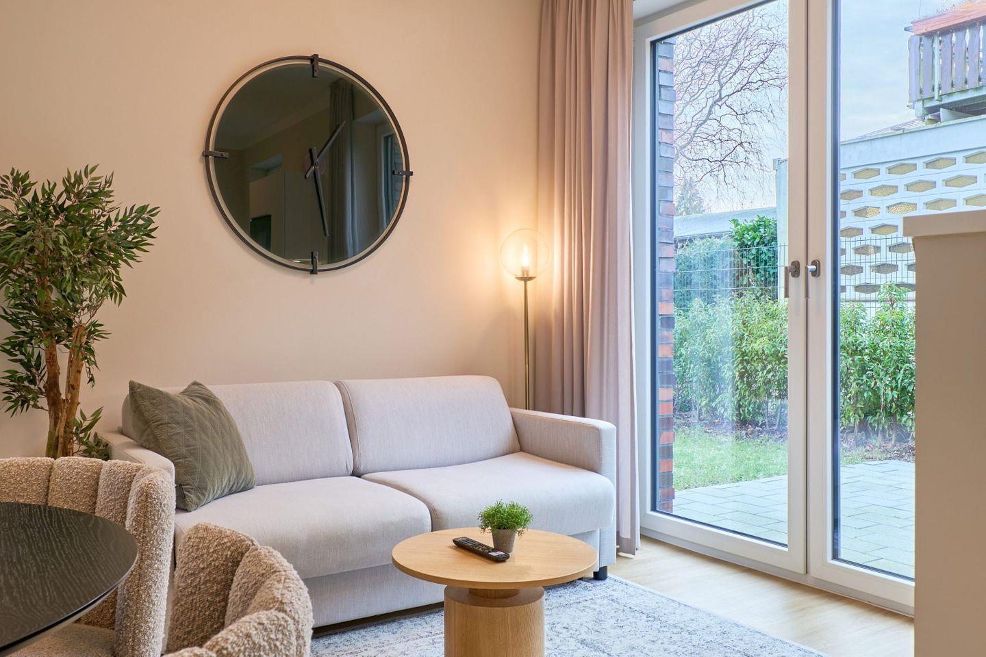 Willkommen in der stilvoll eingerichteten Ferienwohnung Seven Seas! Das Wohnzimmer bietet einen 50-Zoll-Smart-TV und eine ausziehbare Schlafcouch (140x200 cm). Die Küche ist vollständig ausgestattet. Auf der Terrasse laden ein Weber-Elektrogrill und ein bequeme Gartenmöbel zum Entspannen ein. Im Schlafzimmer erwarten Euch ein Boxspringbett (180x200 cm) und ein 32-Zoll-Smart-TV. WLAN, Parkplatz, Fahrradschuppen und Premium-Wäschepaket sind inklusive.