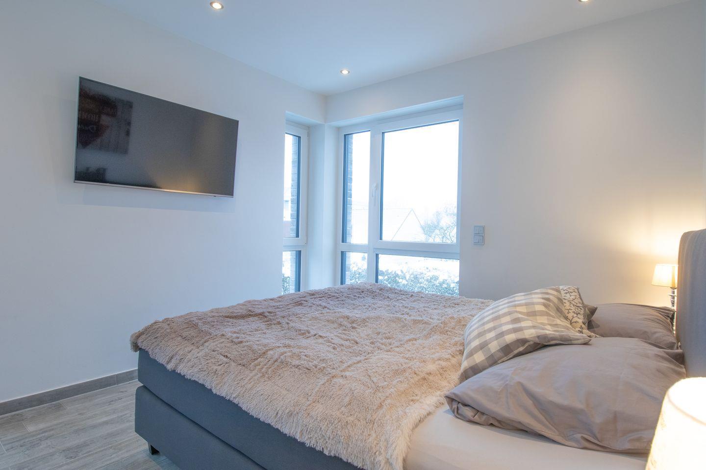 Das moderne Tageslichtbad ist mit einer bodengleichen Dusche, Waschtisch, WC und Handtuchheizung ausgestattet – dein persönlicher Wellnessbereich für die Urlaubstage.