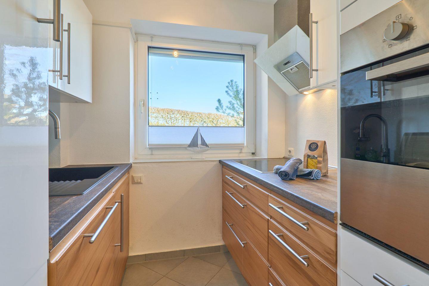 Ein besonderes Highlight der Wohnung ist die sonnige Terrasse, auf der Sie die frische Ostseeluft in vollen Zügen genießen können. Machen Sie es sich im eigenen Strandkorb bequem und lassen Sie den Blick über die Natur schweifen. Hier können Sie bei einem guten Buch entspannen oder den Tag mit einem ausgiebigen Frühstück im Freien beginnen. Das moderne Duschbad sorgt für einen angenehmen Start in den Tag und bietet Ihnen zeitgemäßen Komfort.