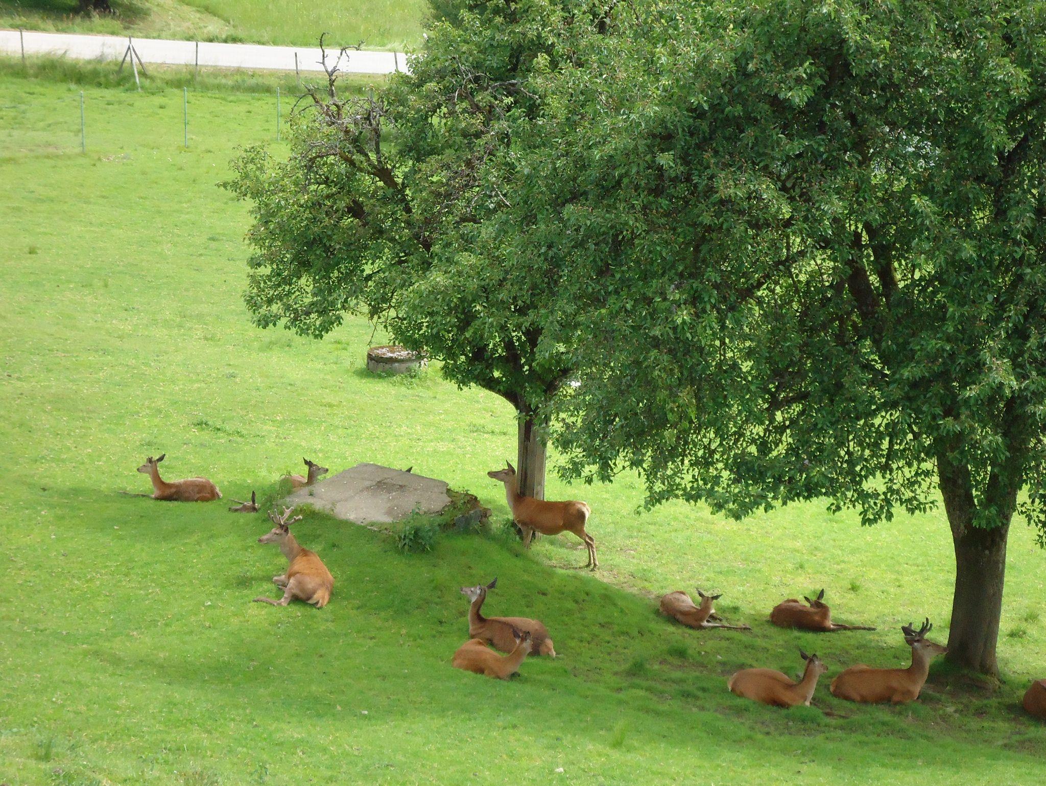 Unser idyllisches Landhaus (Pension Garni) liegt oberhalb der Nebelgrenze, in traumhafter Alleinlage auf dem Berg und ist umgeben von Wald, Wiesen und dem hauseigenen Rothirschgehege. Im Herbst ist der Mischwald besonders traumhaft. Mediterane Atmosphäre im Feng-Shui Garten.
