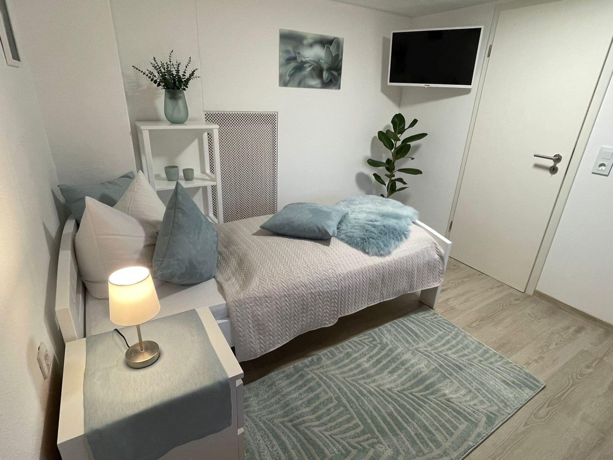 Element Metall großzügiges Einzelzimmer, schlichte helle Töne Der Blick aus dem Fenster geht auf unseren Feng Shui Garten.