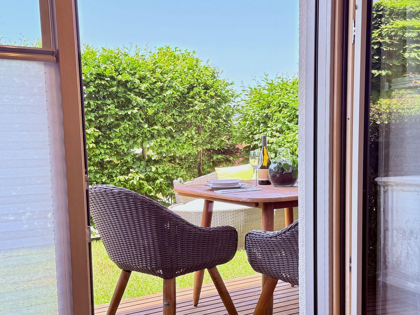 Auf der nutzbaren eigenen Terrasse mit kleinem eigenen Garten genießen Sie beeindruckende die Ruhe der Allgäuer Landschaft. Frühaufsteher können direkt vom nahegelegenen Höhenweg aus den Sonnenaufgang über den Vorarlberger Bergen bestaunen.