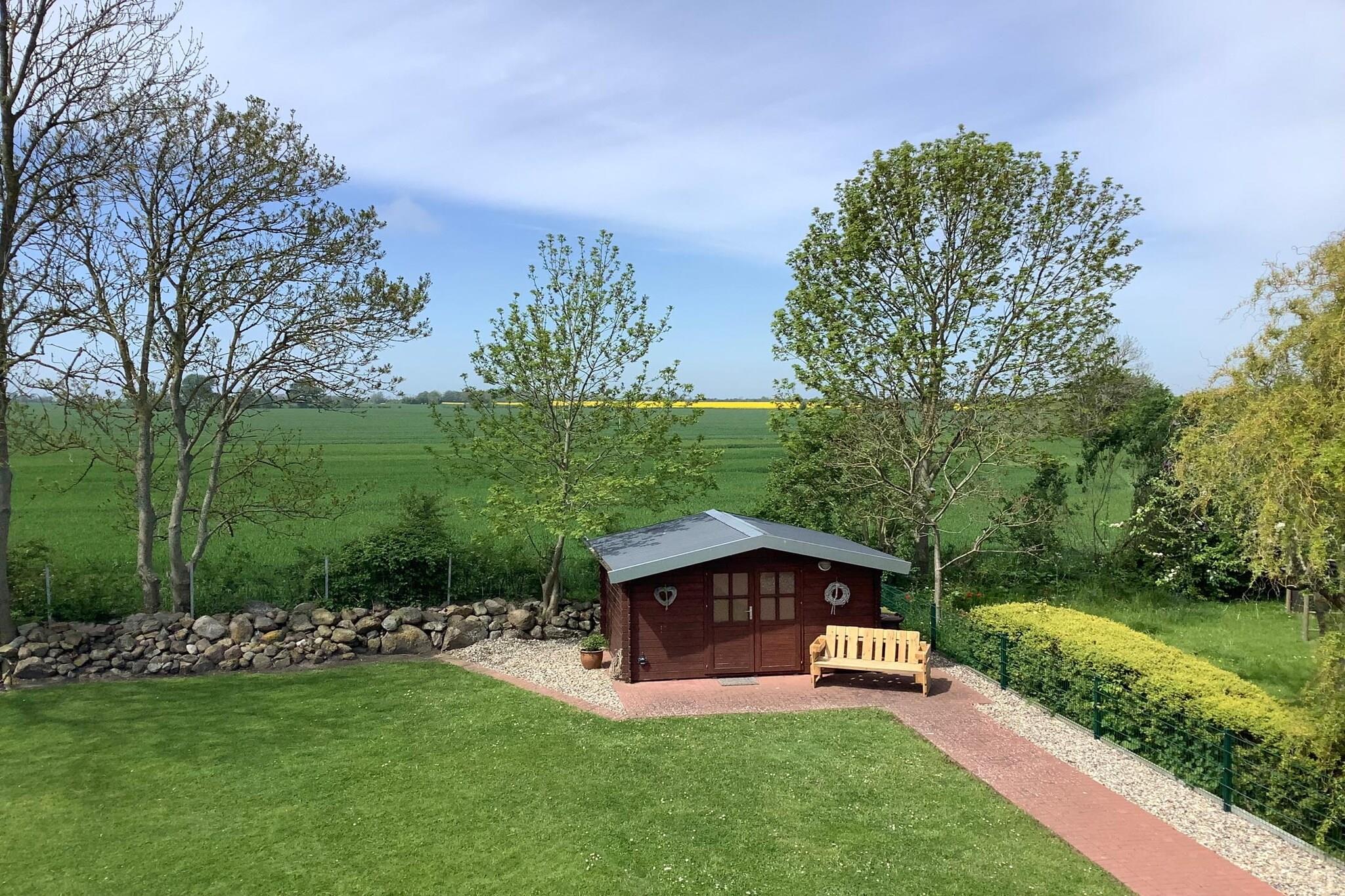 Dette smukt og roligt beliggende feriehus byder på plads til 2 familier eller vennepar. Det består af 2 separate lejligheder i stueetagen og de øverste etager. De er både lyse og venligt indrettede, og stuelejligheden byder også på pejs. Fra begge lejligheder har du en fantastisk udsigt over de tilstødende marker og naturen. Det betyder, at du kan nyde komforten af to fuldt udstyrede køkkener og stuer. Satellit-tv, et hi-fi-system og gratis WiFi er også tilgængelige. De åbne køkkener er fuldt udstyret med ovn og keramisk kogeplade, mikroovn, opvaskemaskine og mange små elektriske apparater. Der er et stort soveværelse med hver en stor dobbeltseng. Hver lejlighed har et moderne brusebadeværelse med gulvvarme. I Frienhaus's udendørsområde har gæsterne adgang til terrasser på to sider, hvoraf den ene har en elektrisk solsejl. Den store have byder på flere siddemuligheder og et haveskur med ekstra siddepladser og mulighed for at opbevare cykler. Højdepunkter inkluderet: Alle forbrugsbaserede energiomkostninger TRÅDLØS INTERNETADGANG Gratis parkeringsplads ved sommerhuset Schlagsdorf er en lille landsby i den smukke vestlige del af øen med en idyllisk landsbydam. Feriehuset ligger meget stille i udkanten af landsbyen og har en fantastisk udsigt over de tilstødende marker mod Østersøen. Stranden med strandstole i Bojendorf ligger cirka 3 km væk. Der er lige så langt til stranden i Westermakelsdorf, et populært surfingområde. Du kan tage på skønne cykelture på de mange stier gennem markerne og på digerne, for eksempel til Flügge eller Westermakelsdorf fyrtårne og til den lille havn i Orth. Der er indkøbsmuligheder i Petersdorf, 3 km væk. Ud over et supermarked og en discountbutik er der bager, frisør, læge og fysioterapi. Små restauranter, caféer og butikker inviterer dig til at blive hængende. Også den smukke Peter