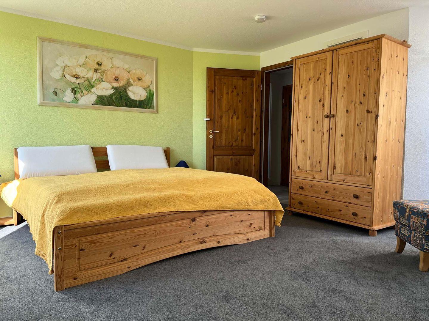 Die Küchenzeile ist ausgestattet mit Backofen und Ceranfeld, Kühlschrank mit Gefrierfach, Kaffeemaschine, Toaster und Wasserkocher. Ein Raumteiler trennt die Küche vom Wohnbereich. Über einen kleinen Flur gelangen Sie ins moderne Duschbad und das großzügige Schlafzimmer mit Doppelbett und gemütlicher Leseecke. Auch Sat-TV und freies W-Lan sind vorhanden.