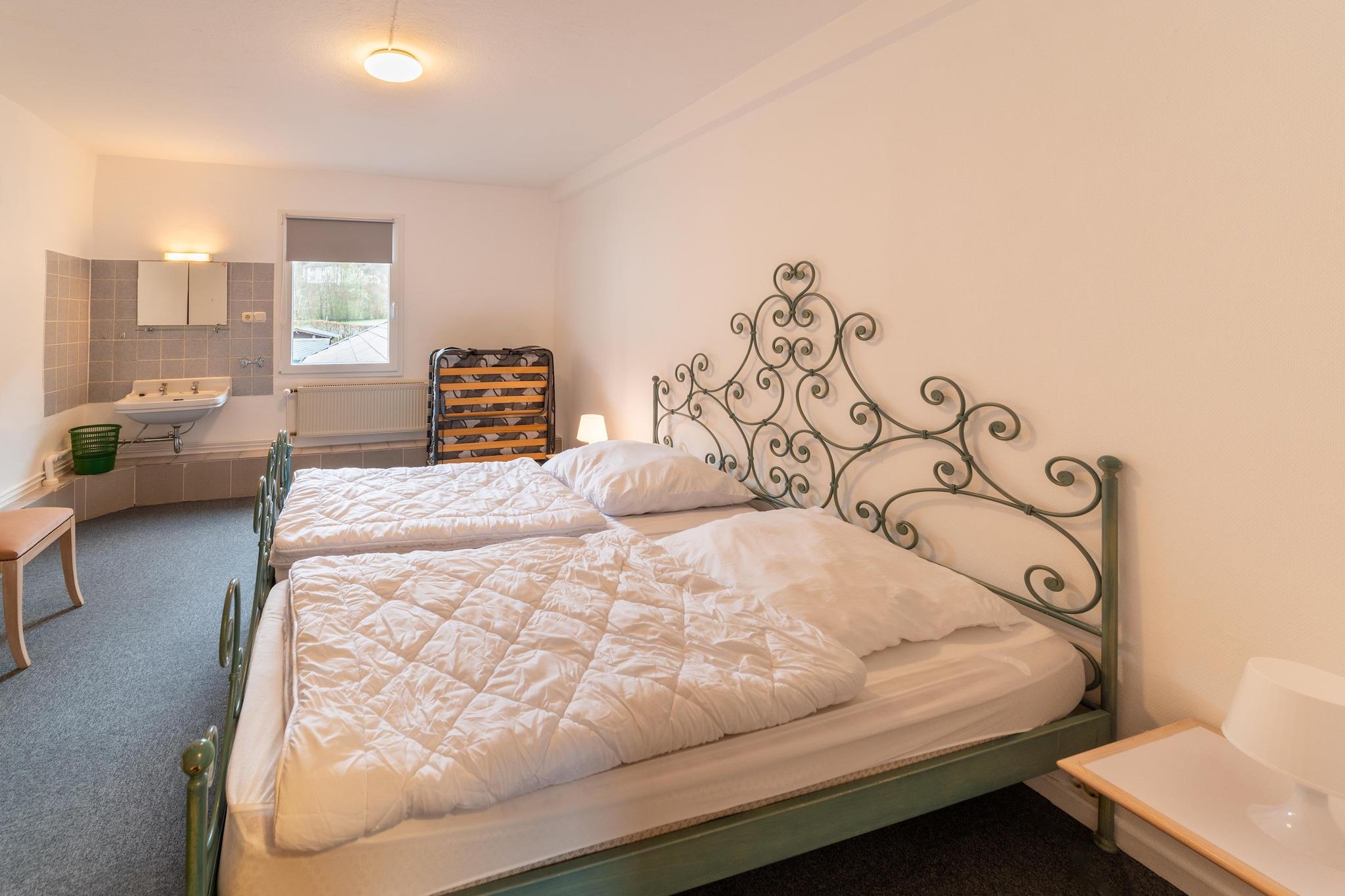 Beliggende i hjertet af Eifel Nationalpark nær Monschau, dette smukt renoverede 14-værelses feriehus byder velkommen til op til 30 gæster, hvilket gør det ideelt for store familier og vennegrupper. Den rummelige planløsning omfatter en privat have, indhegnet gårdhave og terrasse med havemøbler og en gasgrill, perfekt til udendørs sammenkomster. Fra juni 2024 kan gæsterne nyde en afslappende session i den nye infrarøde sauna. Beliggende kun 1 km fra supermarkeder, restauranter og natteliv, og 5 km fra en naturskøn sø og skilift, byder huset på både bekvemmelighed og eventyr. Indendørs holder et opholdsrum med spil alle underholdt, mens gratis parkering på stedet og elbil-opladning tilføjer praktisk komfort. Op til 5 kæledyr er velkomne (mod et lokalt gebyr), og den indhegnede gårdhave sikrer, at de har plads til at lege. Bemærk venligst: fyrværkeri og støjende fester er ikke tilladt, og en concierge er i nærheden til at hjælpe. Offentlig transport er tæt på, og gæster bedes respektere afgangstiden for at undgå ekstra gebyrer. Bestik og service skal tørres rent, da dette ikke er en del af slutrengøringen.