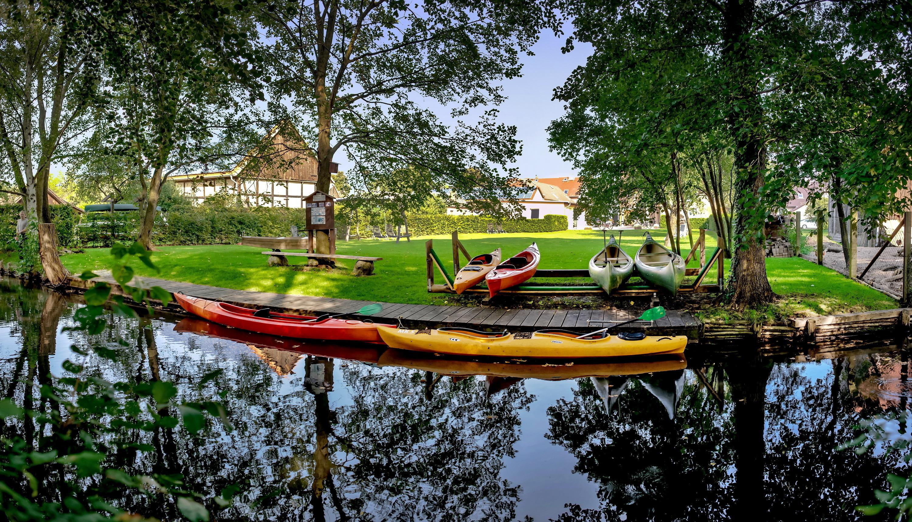 Fahrradverleih und Paddelbootverleih direkt vom eigenen kleinen Hafen.