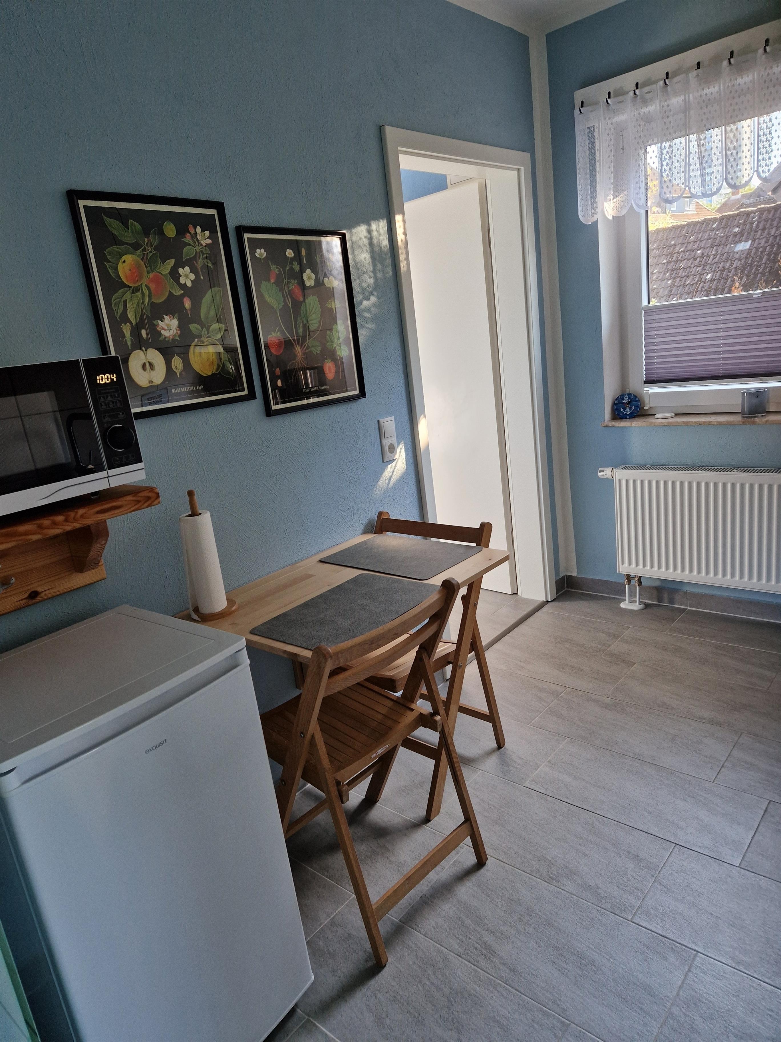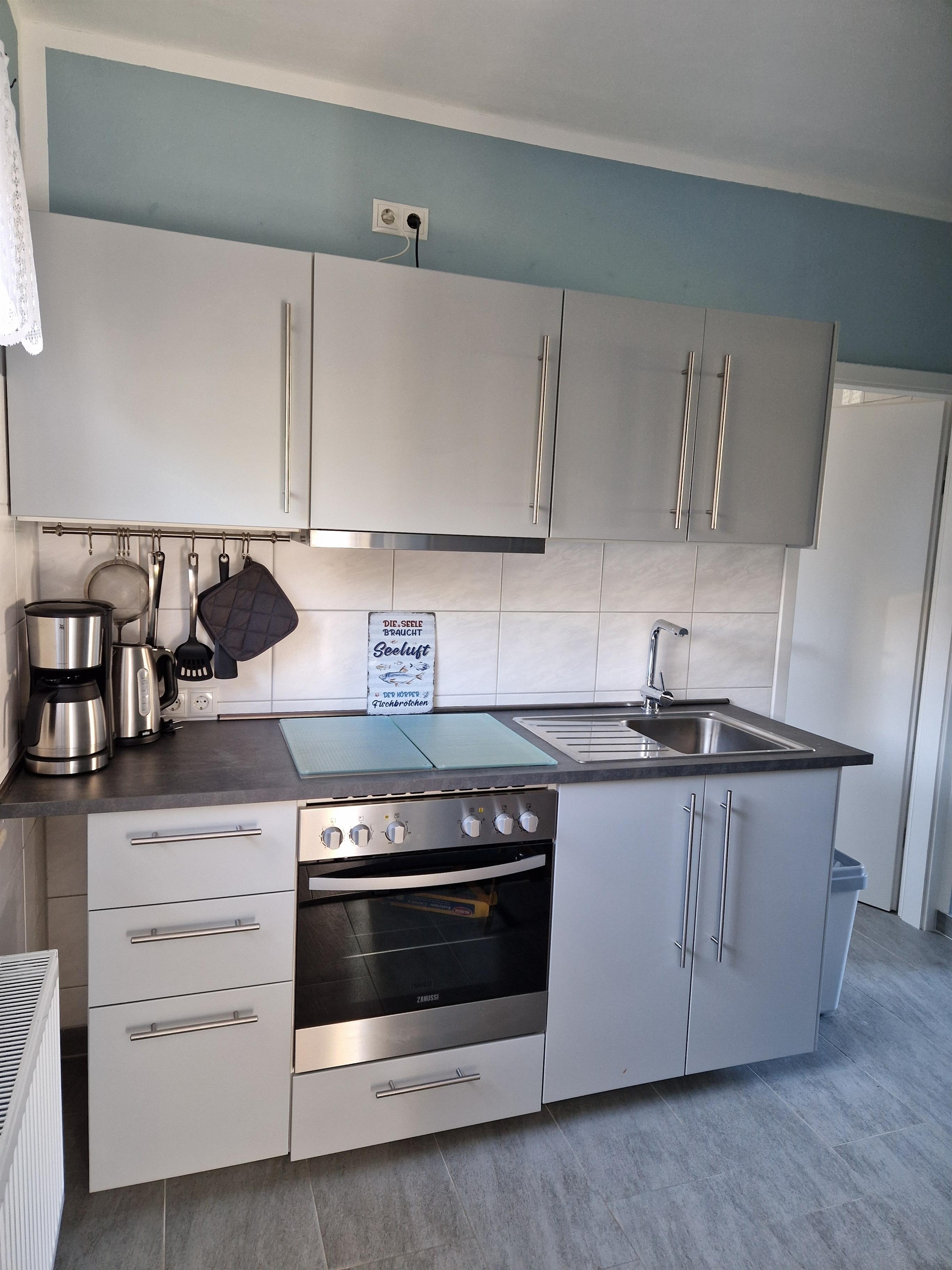 Unsere Ferienwohnung "Seekiste" verfügt über Bad/ WC, separate Küche mit Essecke, Schlafzimmer mit Schrankbett ( 1,6 m x 2,0 m) und ein Wohn-Esszimmer.