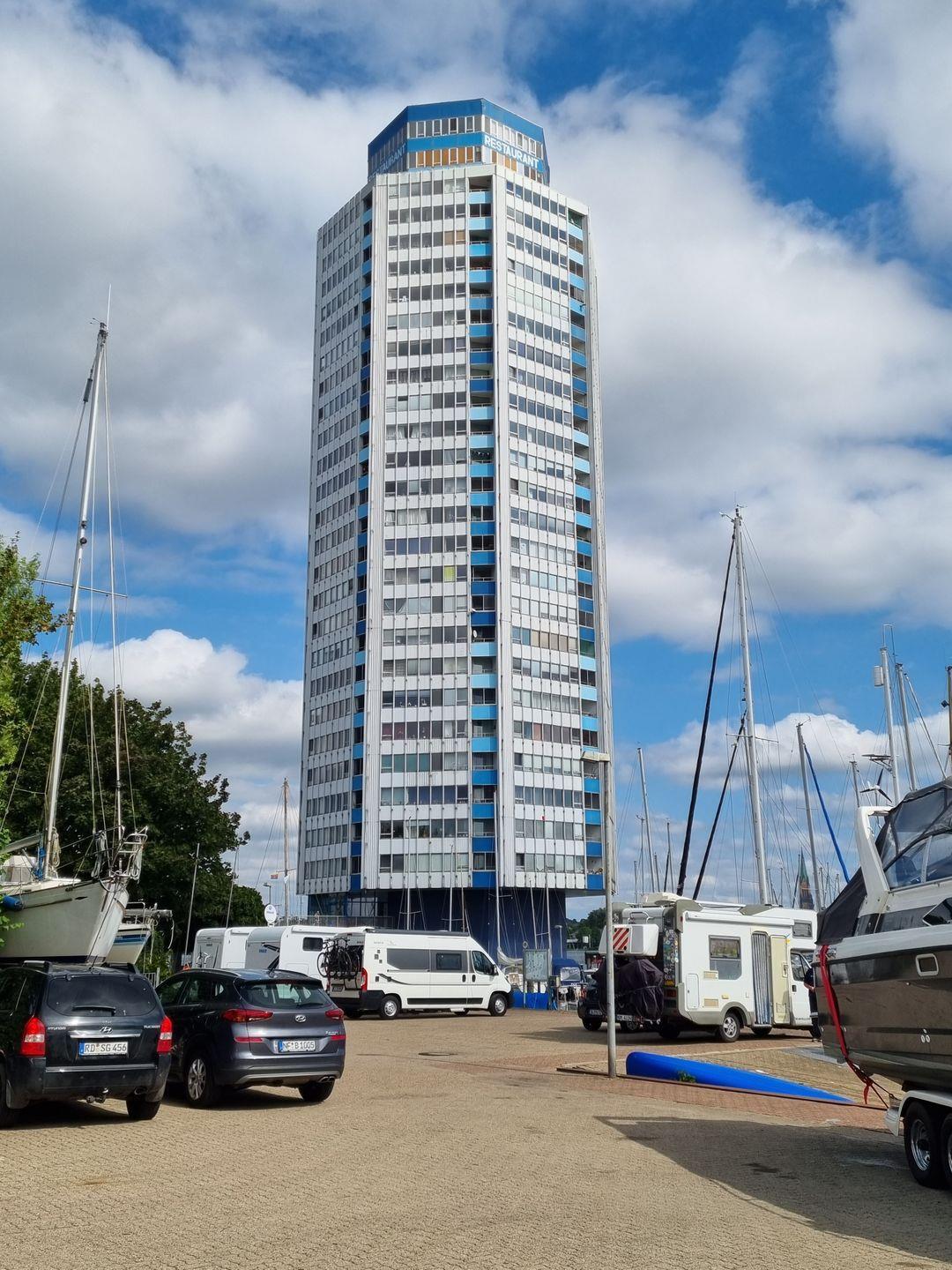 Die großräumige Zwei-Zimmer-Wohnung liegt im ersten Stock des schleswiger Wahrzeichen des Wikingturms und ist sowohl über einen Aufzug, als auch über eine Treppe zu erreichen. Ein kleiner Flur bietet die Möglichkeit seine Garderobe und Schuhe abzulegen.