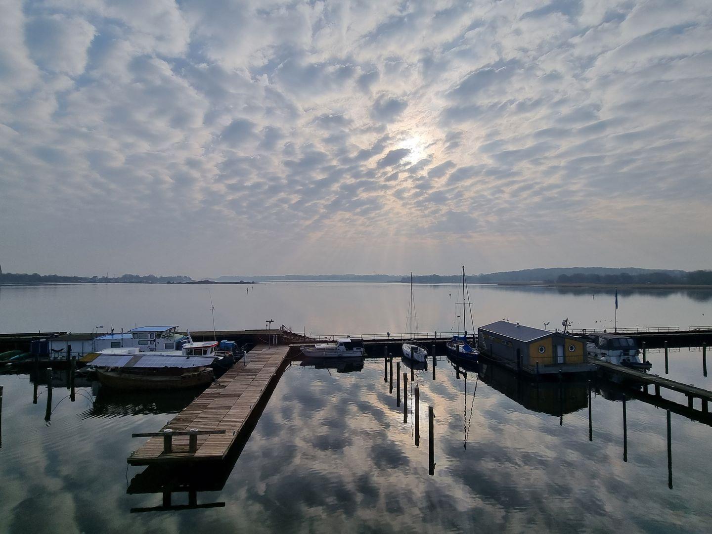 Mit dem Gefühl auf dem Wasser zu sitzen, bieten sich einem zu jeder Tageszeit unglaubliche Ausblicke auf den Ostseefjord Schlei, mit atemberaubenden Sonnenaufgängen. Selbst bei weniger perfektem Wetter zieht der Nebel über dieser Bucht seine Beobachter in den Bann.