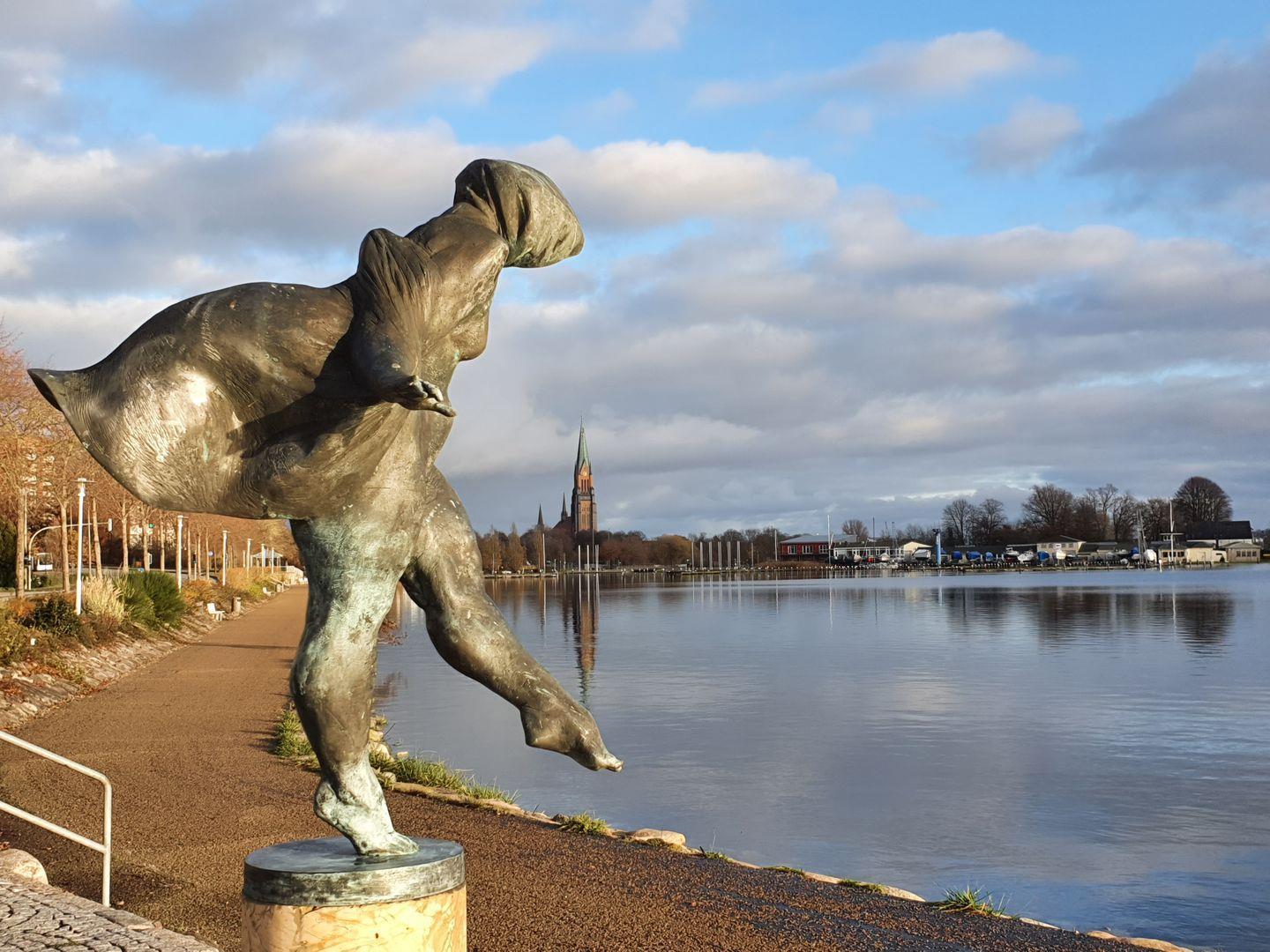 Die Ferienwohnung Schleiloge überwältigt mit dem Panoramablick über den Ostseeausläufer aus nahezu jedem Winkel der Wohnung. Egal ob am Esstisch, direkt an der Fensterfront, mit Blick auf die Schlei und die Sehenswürdigkeiten Schleswigs, wie den Dom, oder auf dem großzügigen Sofa und auch von der offenen Küche aus, ist der Blick stets auf diese Naturschönheit gerichtet. Die kleine Loggia rundet dieses optische Vergnügen in der Gänze ab.
