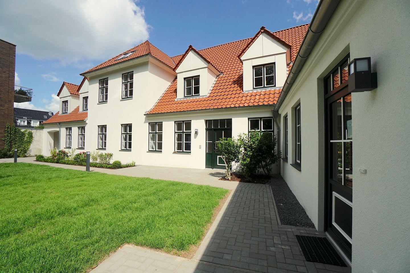 Eine Terrasse mit Blick in den grünen Hinterhof des Hauses bieten zudem die Möglichkeit bei gutem Wetter die Zeit auch dort zu verbringen.