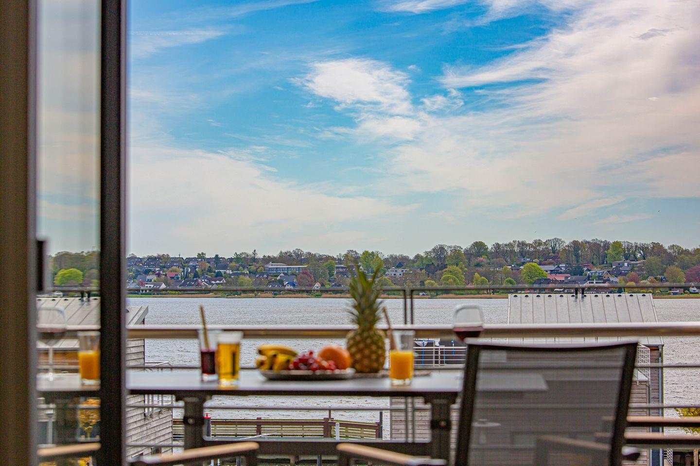 Die barrierearme Ferienwohnung "Wiking-Koje 6" am Pionierhafen in Schleswig bietet auf 71m² mit hochwertiger Einrichtung offen gestaltet einen Wohn- und Essbereich mit angrenzender Küche, zwei Schlafzimmer mit Boxspring Doppelbetten, ein Badezimmer mit bodengleicher Dusche und einen Balkon mit beeindruckendem Blick über den Ostseefjord Schlei. Über einen Aufzug ist die Wohnung im 2. OG erreichbar. Eine Parkfläche, Fahrradunterstellmöglichkeiten und E-Ladestationen stehen zur Verfügung.