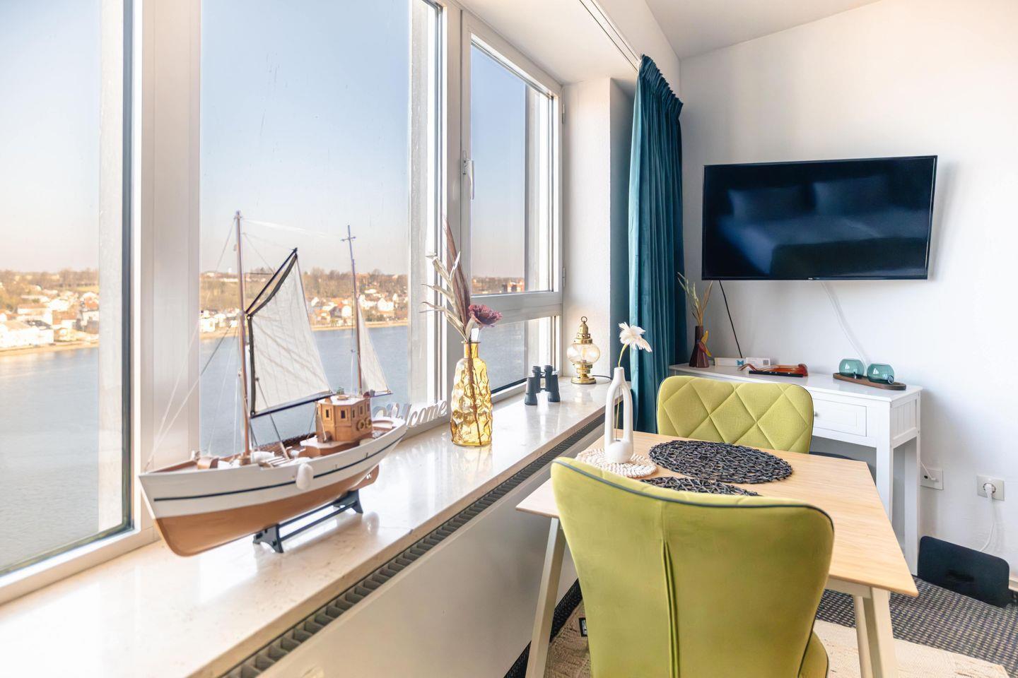 Ferienwohnung "Wikingturm Etage 14 Nr. 1" mit Blick auf Schleswig und die Schlei