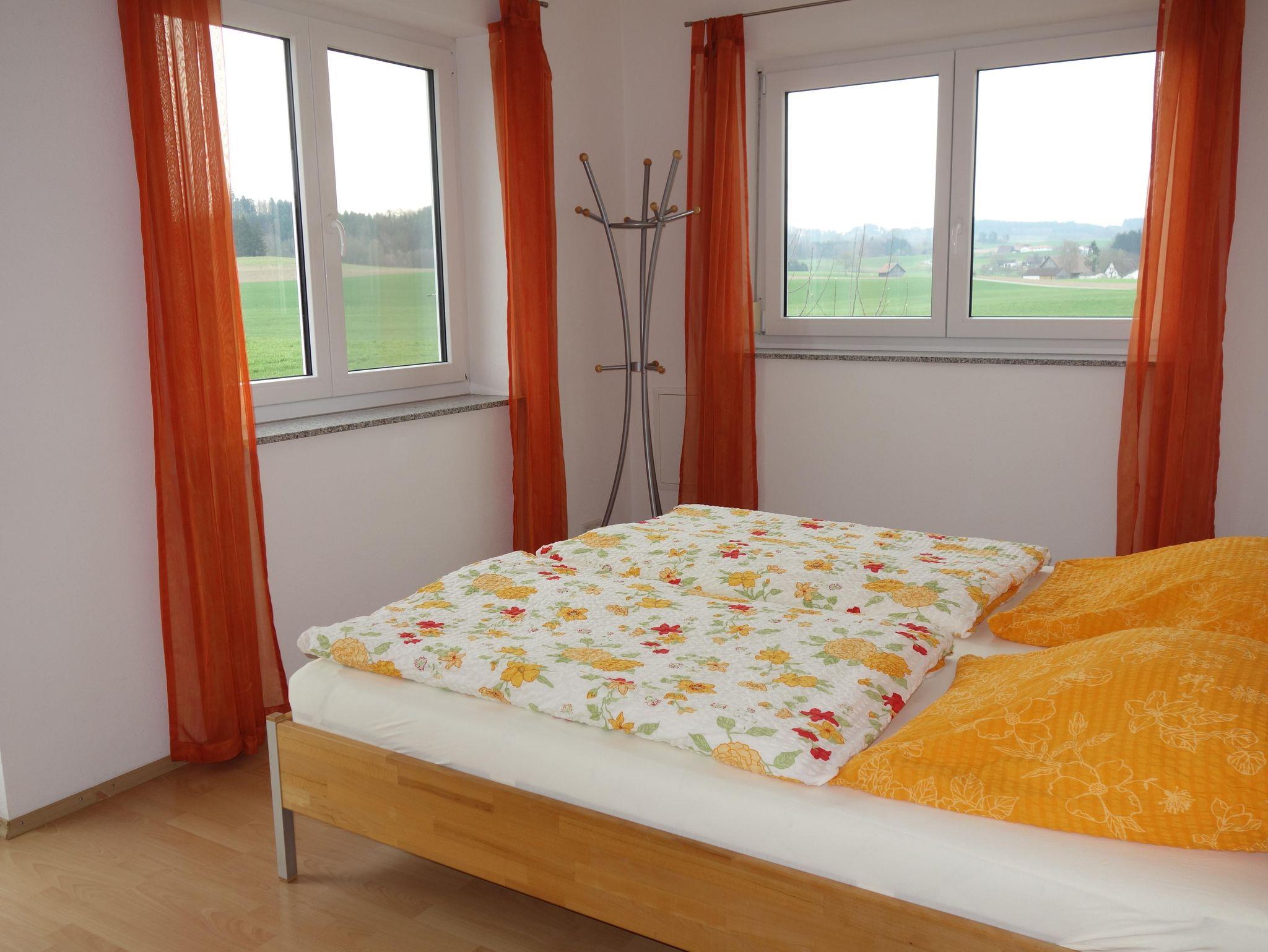 Die 70 qm große Wohnung Margerite im 1 Stock überzeugt mit herrlichem Blick in alle Himmelsrichtungen auf das Schloss Waldburg und auf die freie Natur.