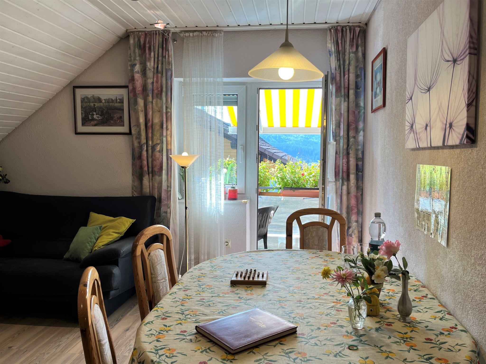"Schleuniger", 3-room apartment 55 m2 on 1st floor. Simple and cosy furnishings: living/dining room with satellite TV. Exit to the balcony. 1 double bedroom. 1 room with 1 double sofabed (140 cm, length 190 cm). Exit to the balcony. Kitchen (oven, dishwasher, 4 ceramic glass hob hotplates, toaster, kettle, microwave, electric coffee machine) with dining table. Shower/WC. Oil heating. Balcony. Balcony furniture. View of the garden. Facilities: children's high chair, baby cot. Internet (WiFi). Please note: non-smokers only.