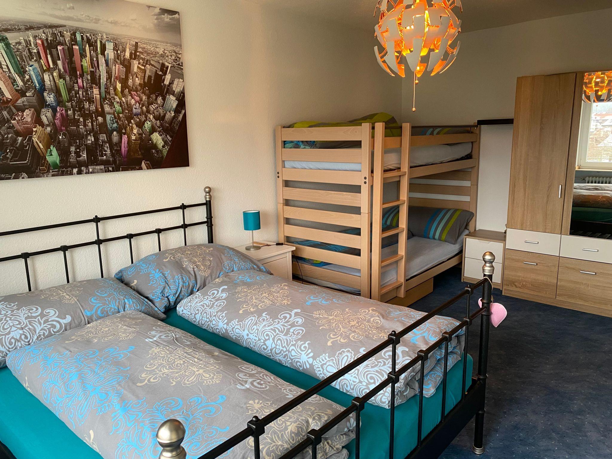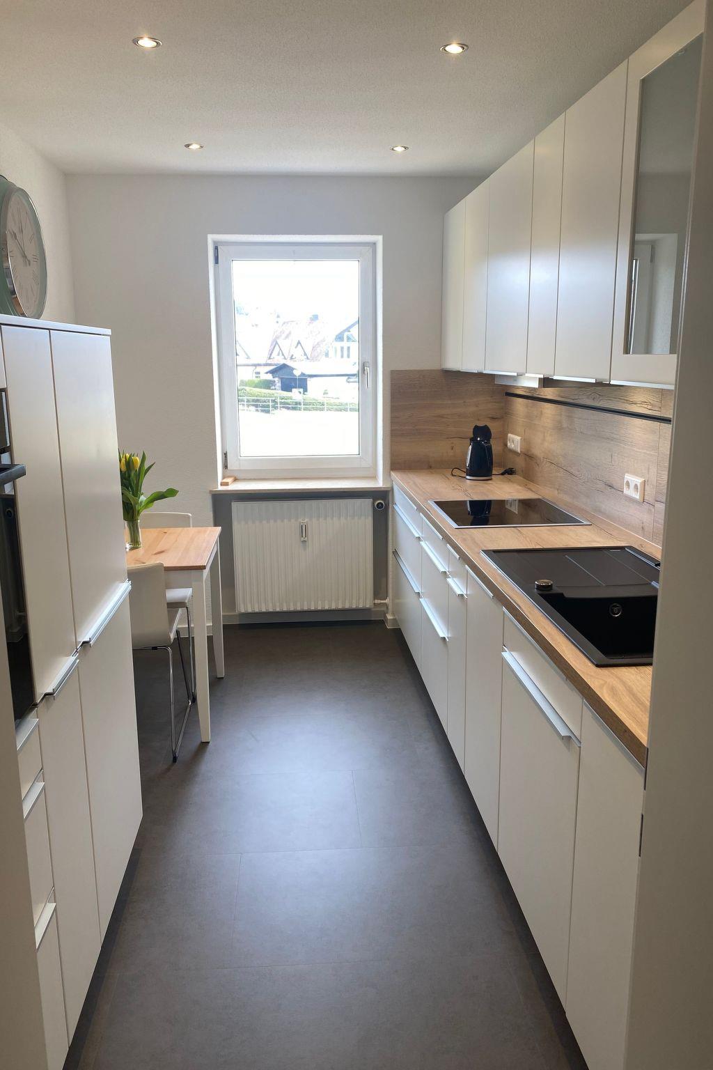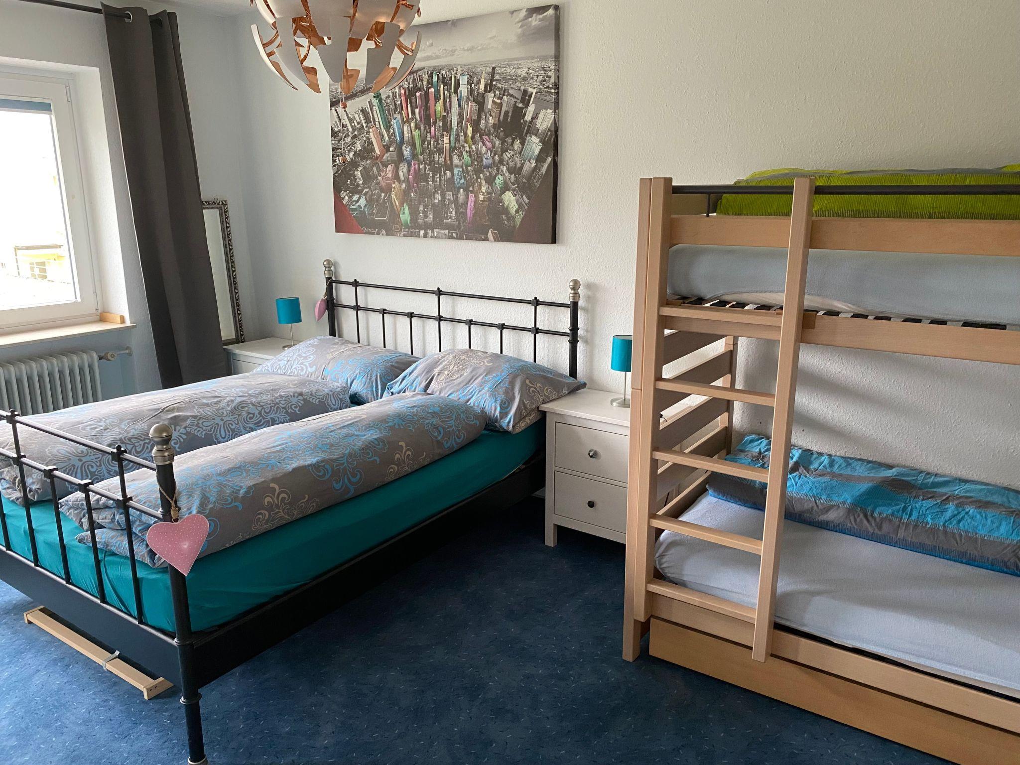 Inside, you will be welcomed by a 2-room flat of approx. 80 m2, which has been recently renovated and impresses with its cosy furnishings. The spacious bedroom is furnished with a double bed, a bunk bed and a spacious wardrobe. A small balcony allows you to enjoy the morning sun. In the living/dining room you will find a comfortable sofa next to a modern flat-screen TV, a pull-out day bed that serves as an additional sleeping option, a dining table and a cosy reading corner. The new kitchen has a ceramic hob, fridge, kettle, oven and dishwasher. A newly renovated bathroom with rain shower and a separate guest WC round off the offer. A parking space in the garage is also available for guests' convenience.