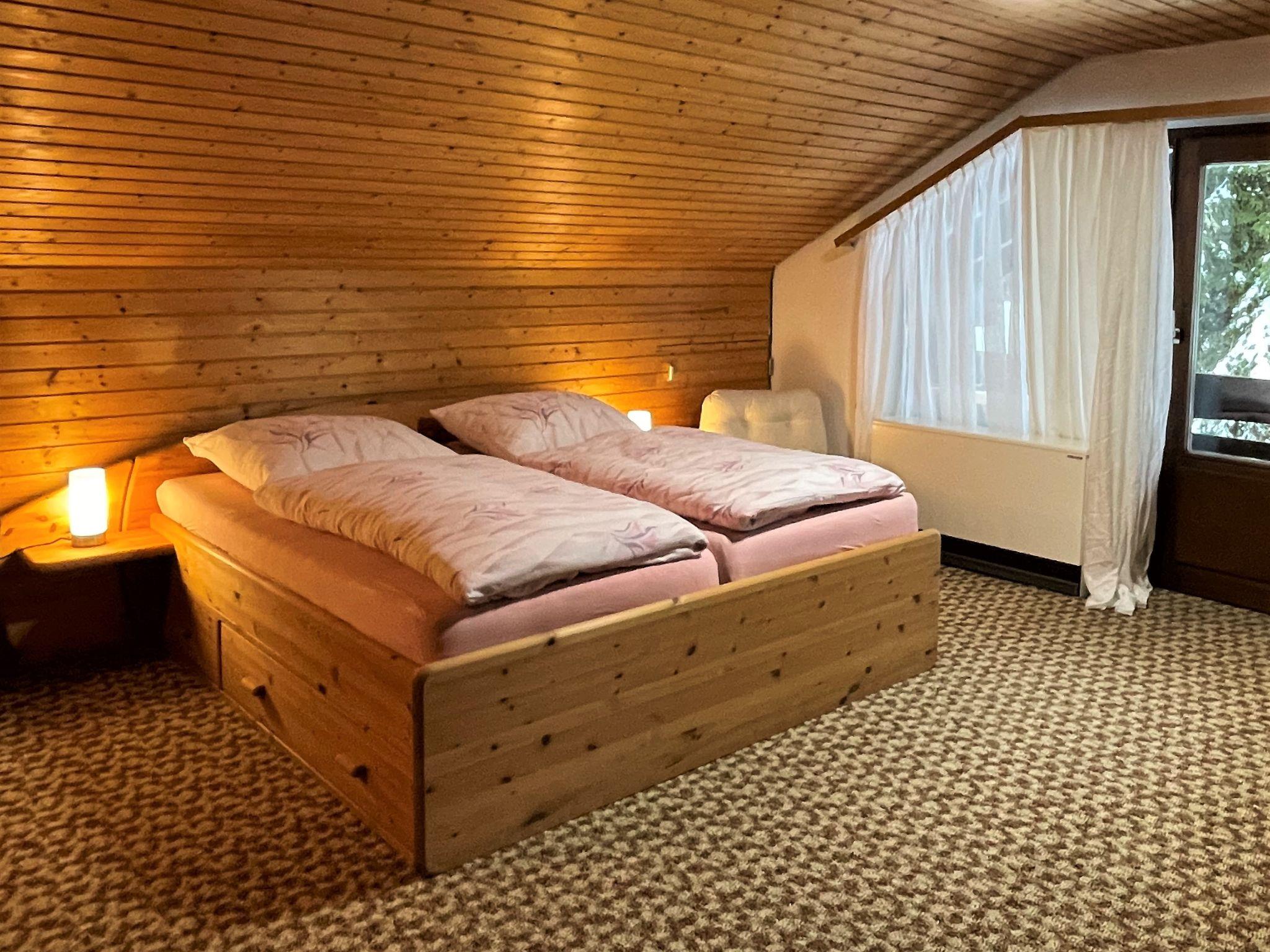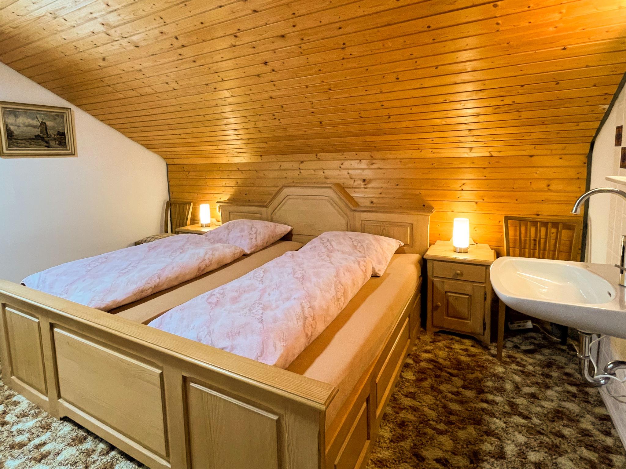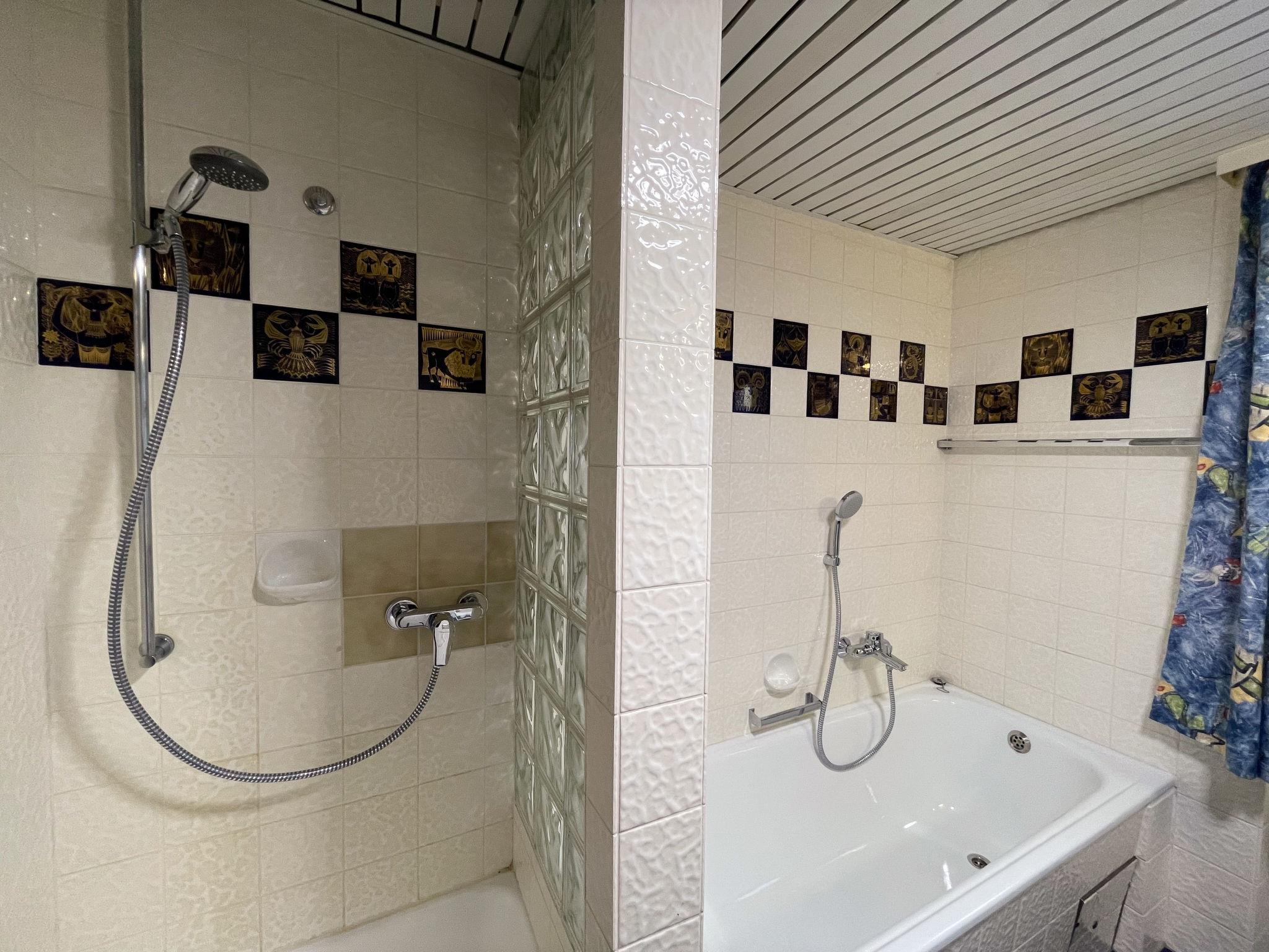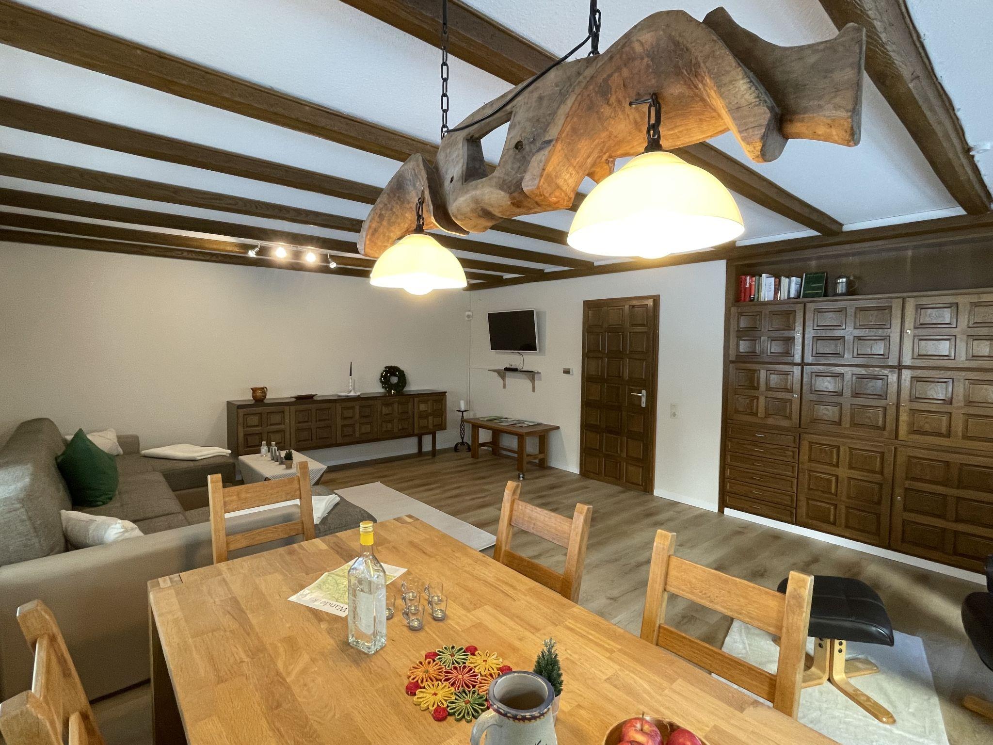 "Habsberg", 4-room apartment 120 m2 on 2 levels. Spacious, partly with sloping ceilings, simple and cosy furnishings: entrance hall. Large living/dining room with Scandinavian wood stove (only for decoration), dining table and satellite TV (flat screen). Exit to the balcony. 1 double bedroom with 1 double bed (200 cm, length 200 cm). Kitchen (oven, dishwasher, 4 ceramic glass hob hotplates, toaster, kettle, microwave, electric coffee machine) with hatch. Bath/shower/WC. Heating. Upper floor: (steep stair), 1 large room with 1 double bed (1 x 200 cm, length 200 cm), hand-basin. Exit to the balcony. 1 room with 1 double bed (1 x 200 cm, length 200 cm), hand-basin. Sep. WC. Wooden floors, carpet. Large balcony. Balcony furniture, electric barbecue. Beautiful view of the garden and the forest. Facilities: washing machine, iron, baby cot, hair dryer. Internet (WiFi, free). Parking at the house. Please note: non-smokers only. Smoke alarm, fire extinguisher. When there are less than the maximum number of guests staying at the property, not all of the bedrooms will be available for use.