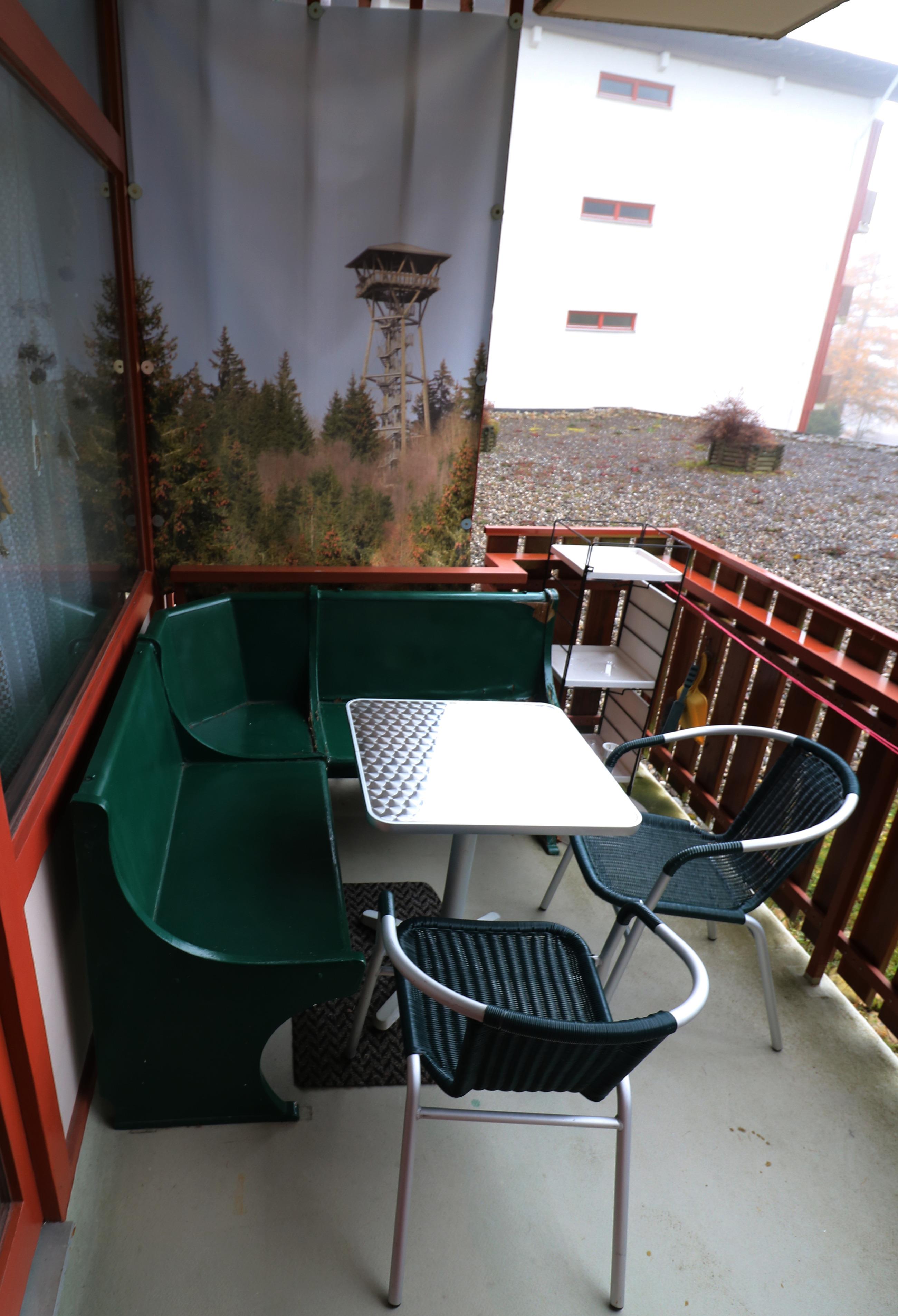 - ein Balkon mit Balkonmöbeln