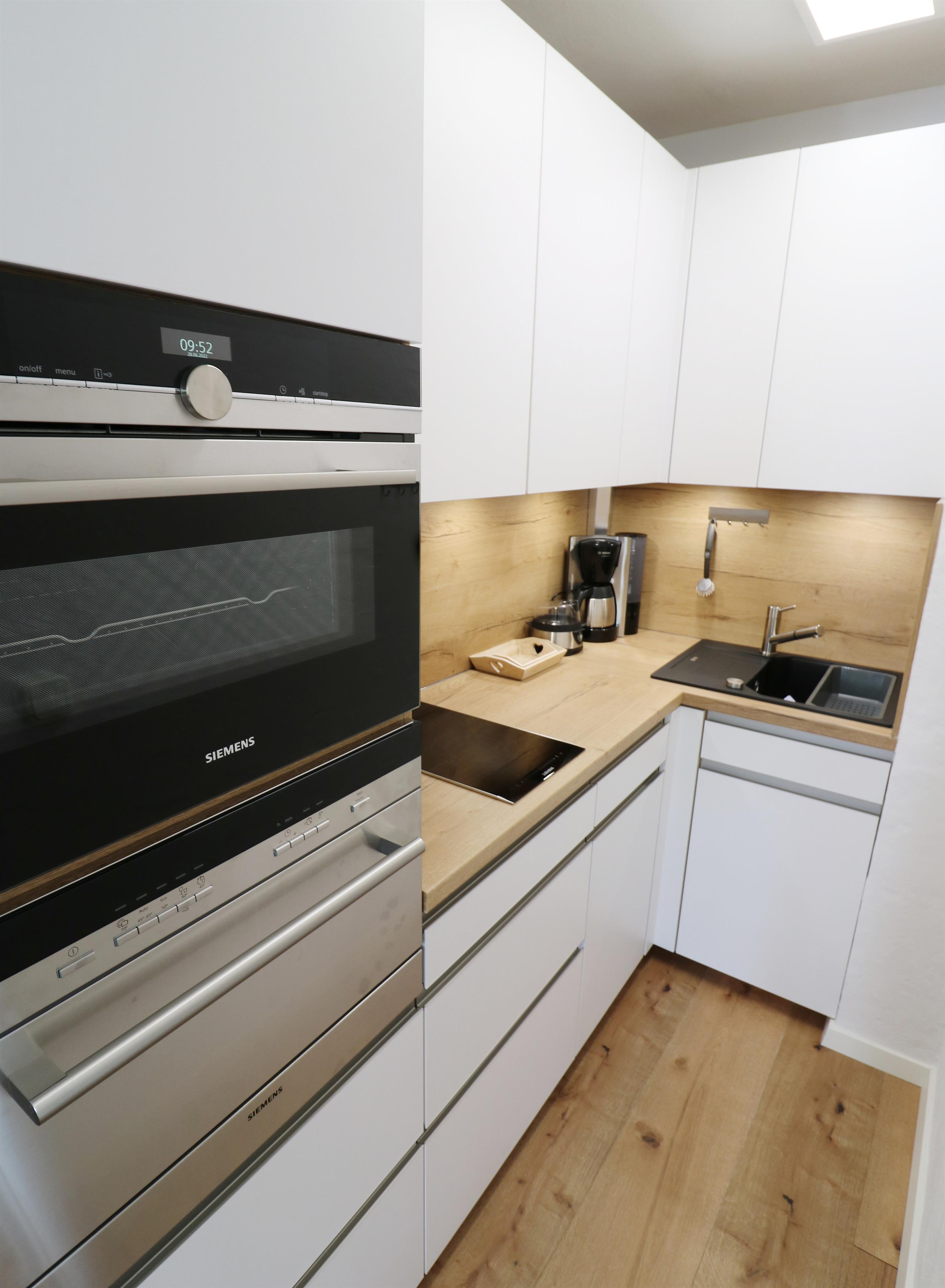 - eine vollausgestattete Küche mit Kühlschrank inkl. Gefrierfach, Herd mit 2 Kochfeldern, Spülmaschine, Wasserkocher, Toaster, Filter-Kaffeemaschine und Küchengrundausstattung