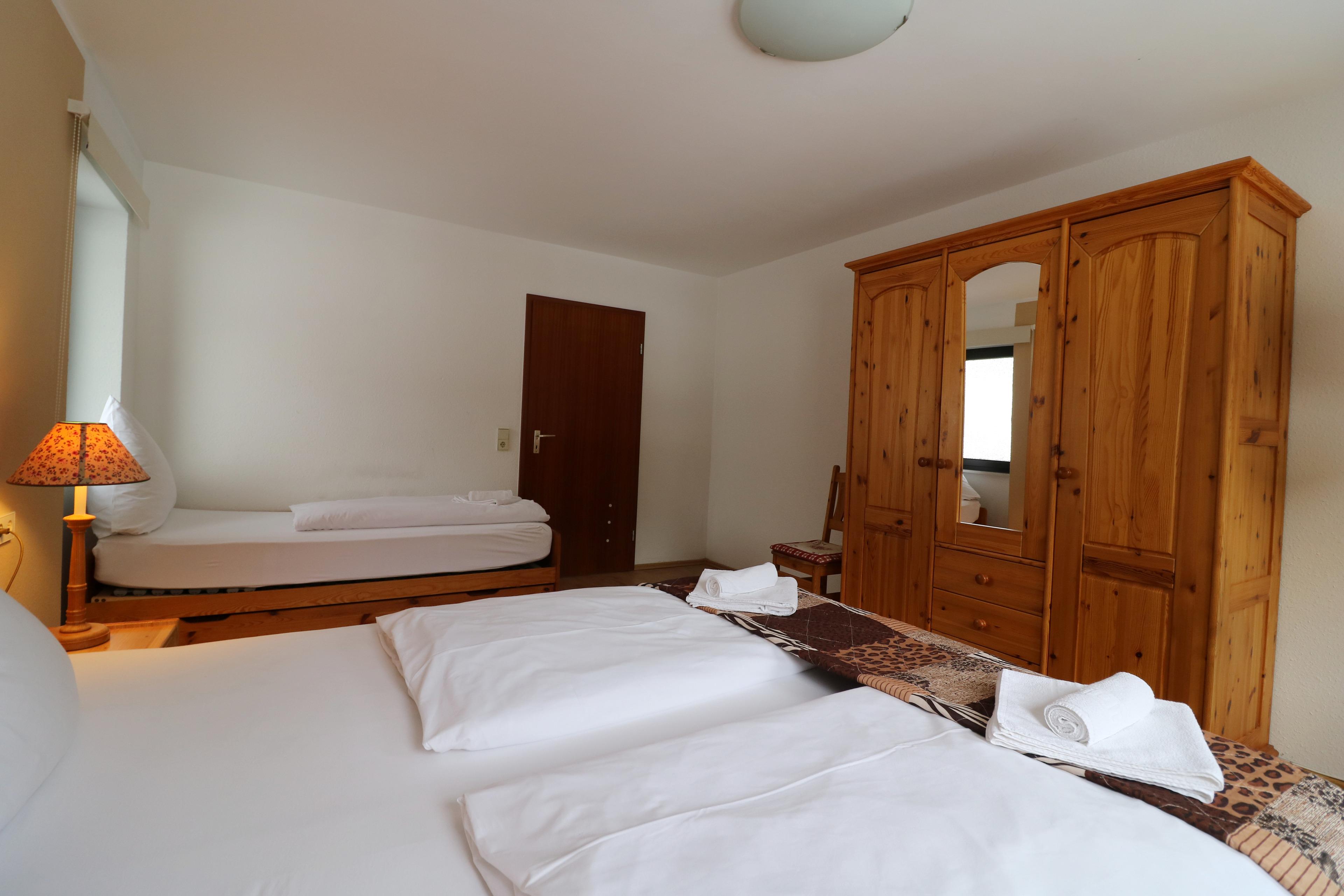 - ein Schlafzimmer mit einem Doppelbett und einem Einzelbett