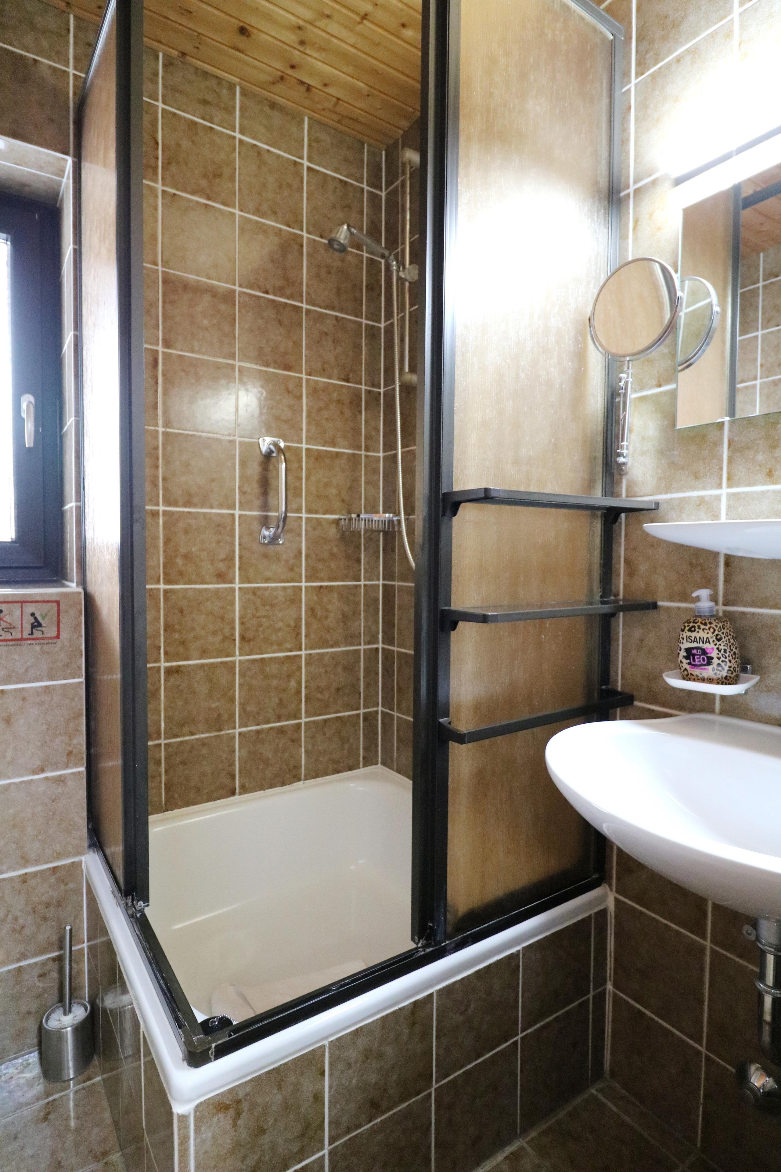 - a bathroom with shower and WC