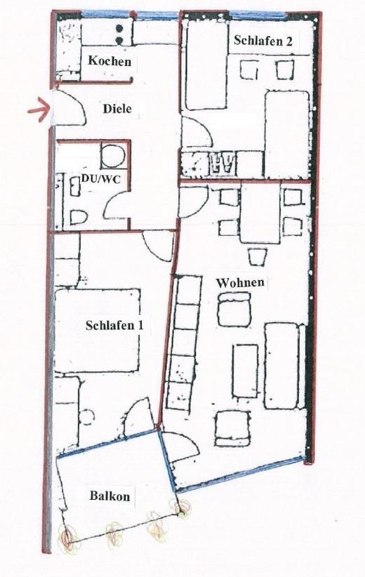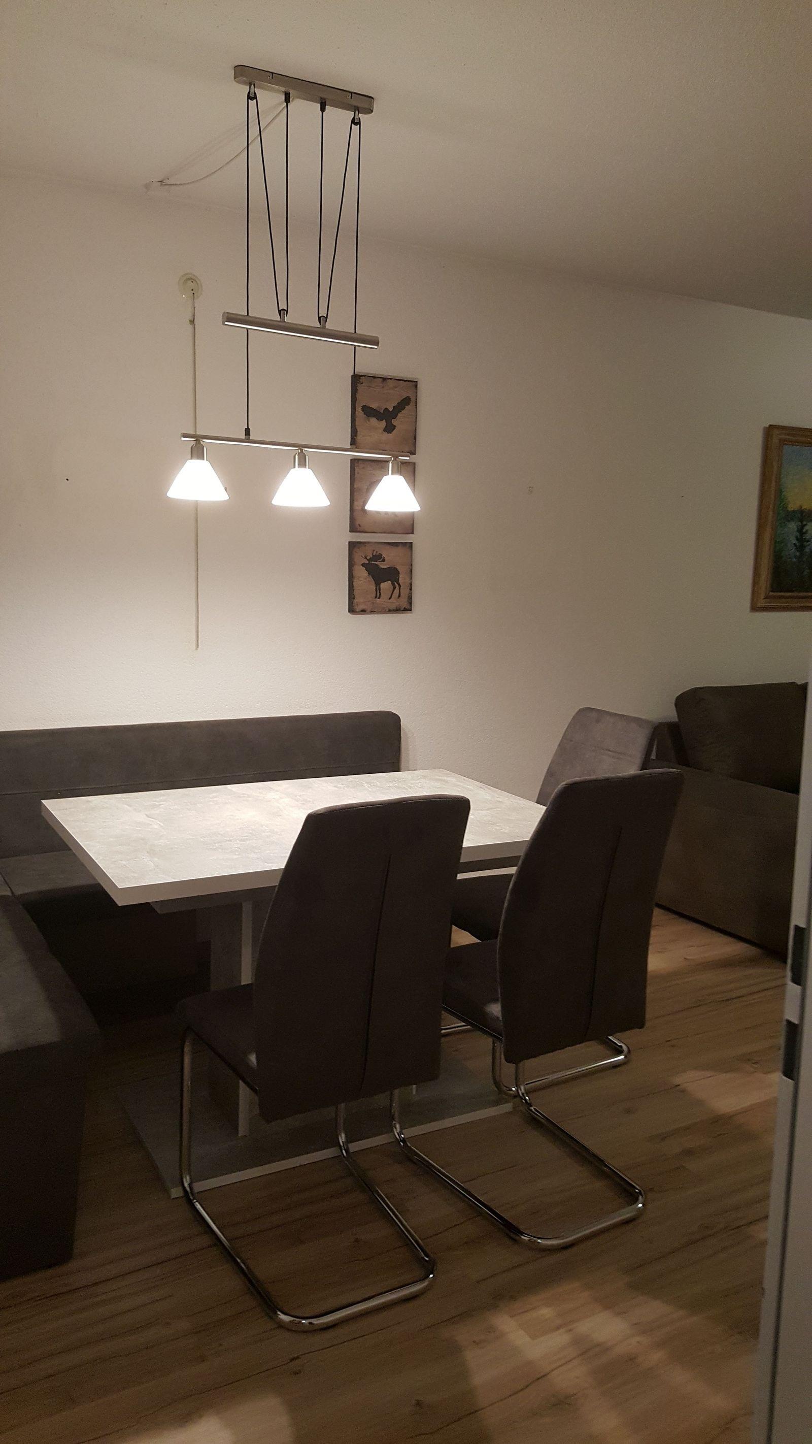- eine Küchenzeile mit Herd (4 Kochfeldern),Backofen, Kühlschrank mit Gefrierfach, Filter- Kaffeemaschine, Toaster, Wasserkocher, Geschirrspüler, Geschirr und Besteck und Küchengrundutensilien