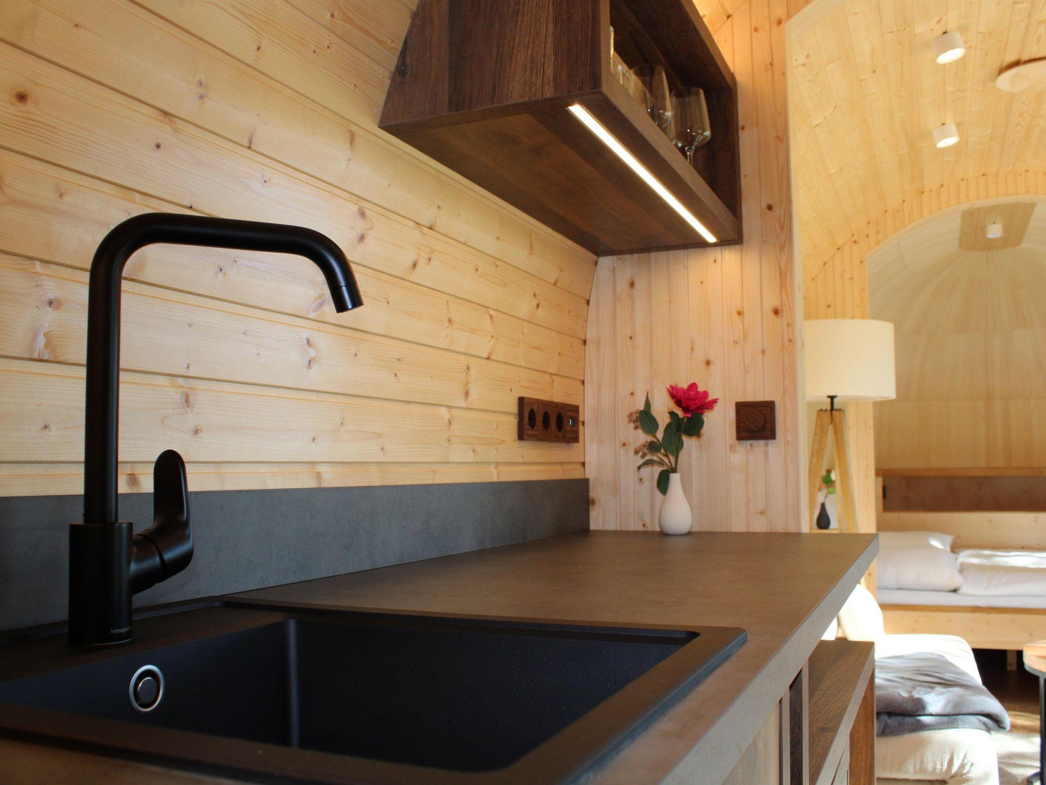 -Ausstattung: Heizung, Kochmöglichkeit, kleiner Kühlschrank, Tee & Kaffee, Wasserkocher, Geschirr/Besteck, Haartrockner, Handtücher, Bettwäsche
