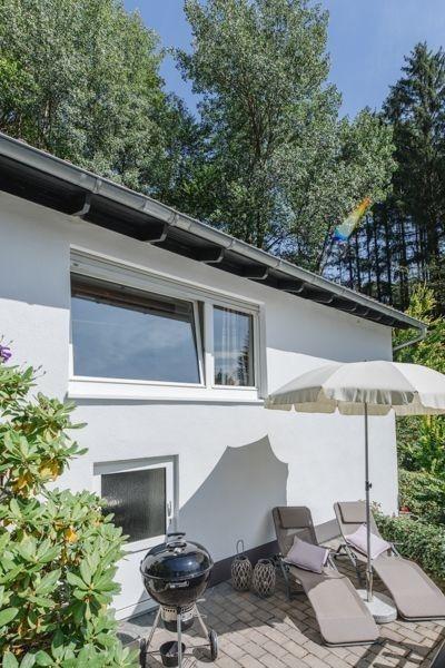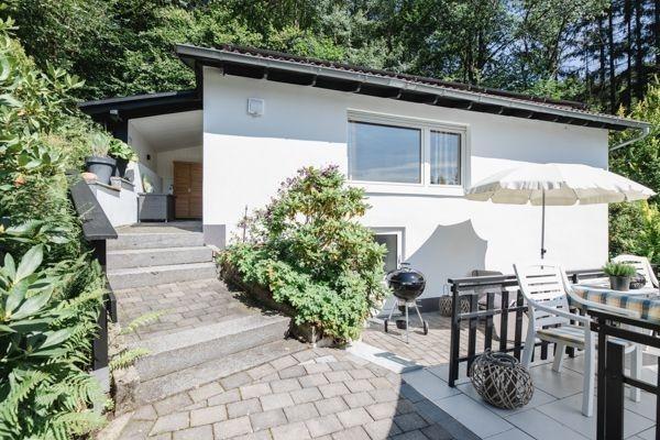 ****Haus Panoramablick, 45 m² für 2-4 Personen, dir am Wald in absolut ruhiger Südhanglage, W-LAN-Zugang, Außensauna und Aussendusche, großes Panoramafenster mit Blick ins Tal. Alleinstehend und allein zu bewohnend.