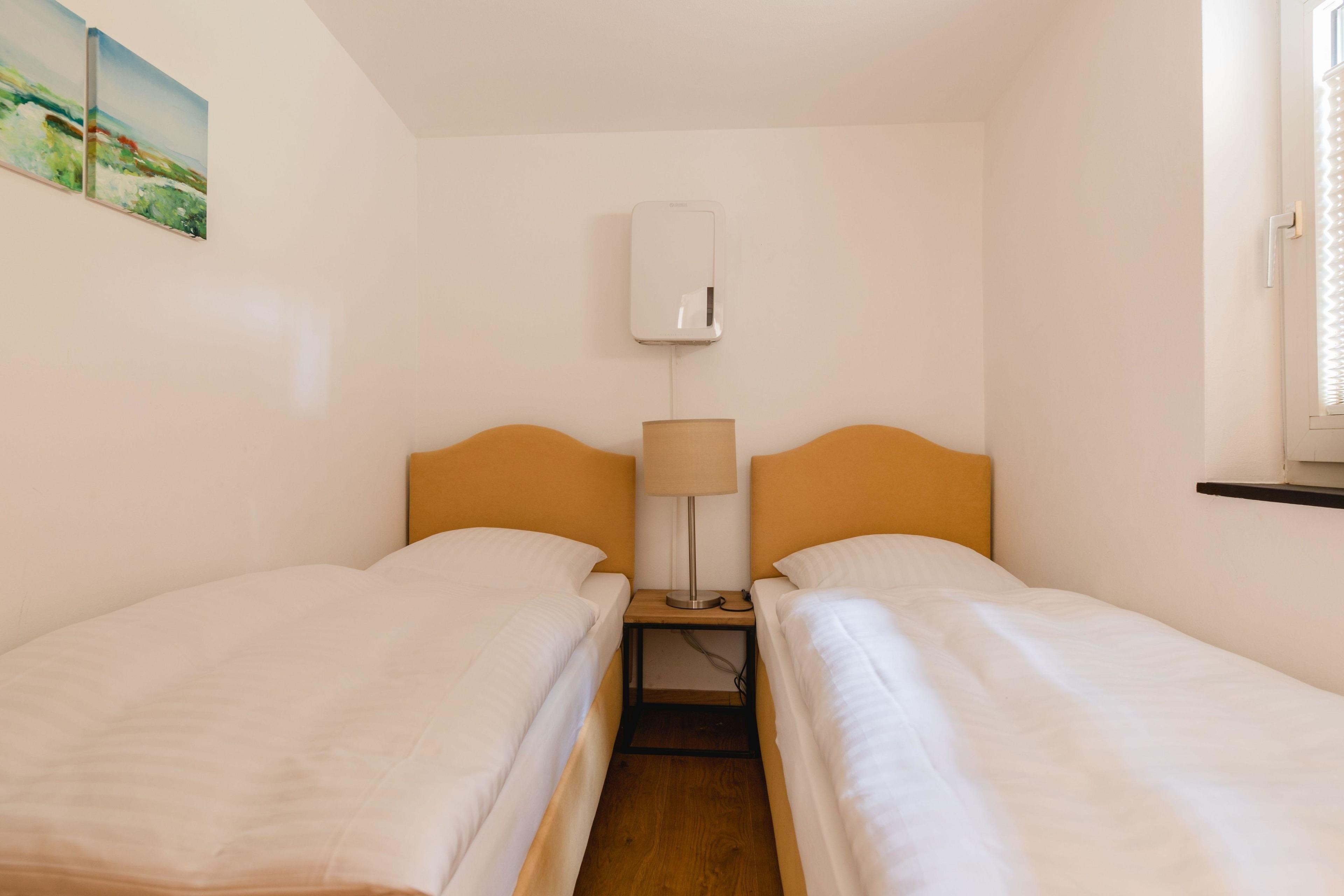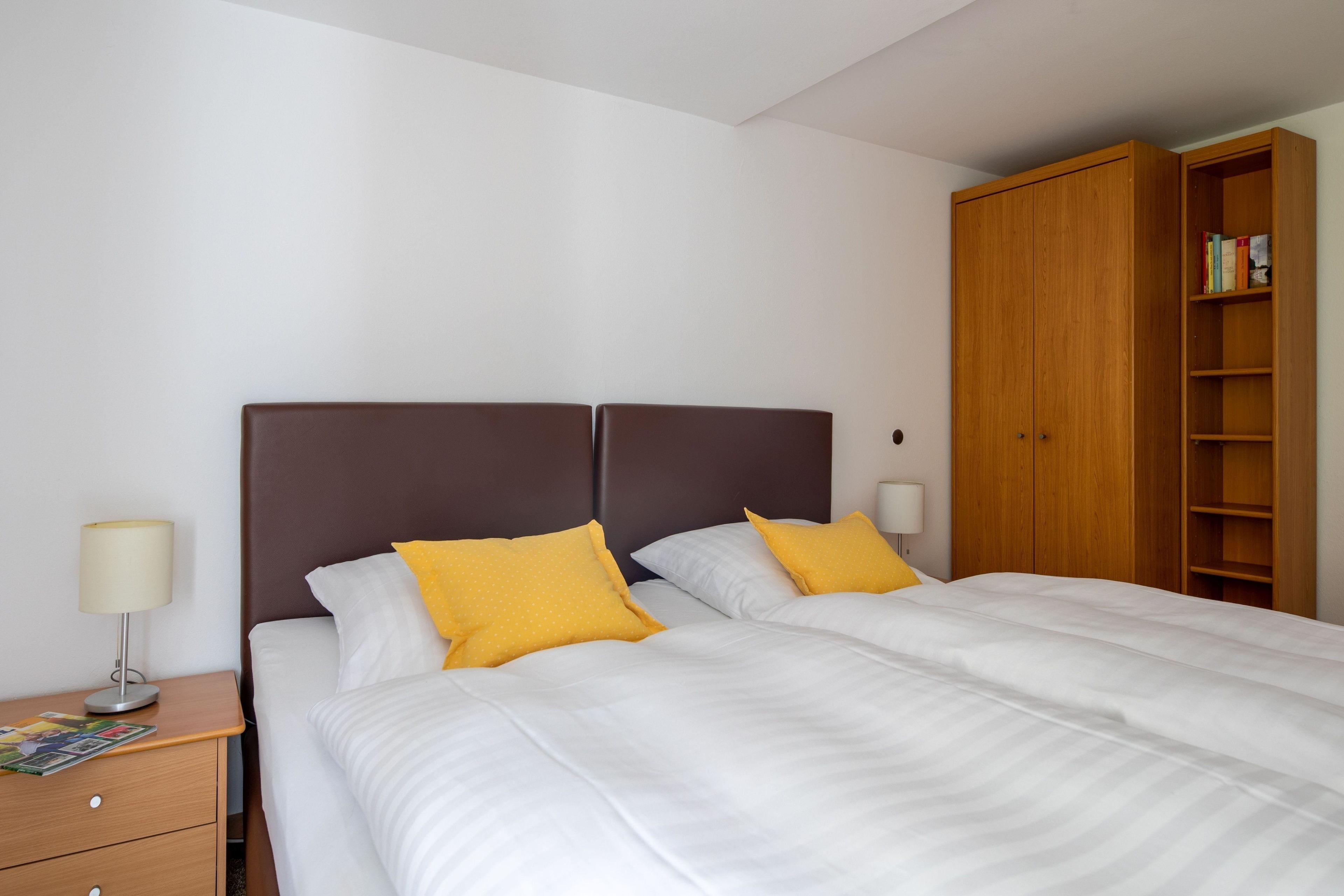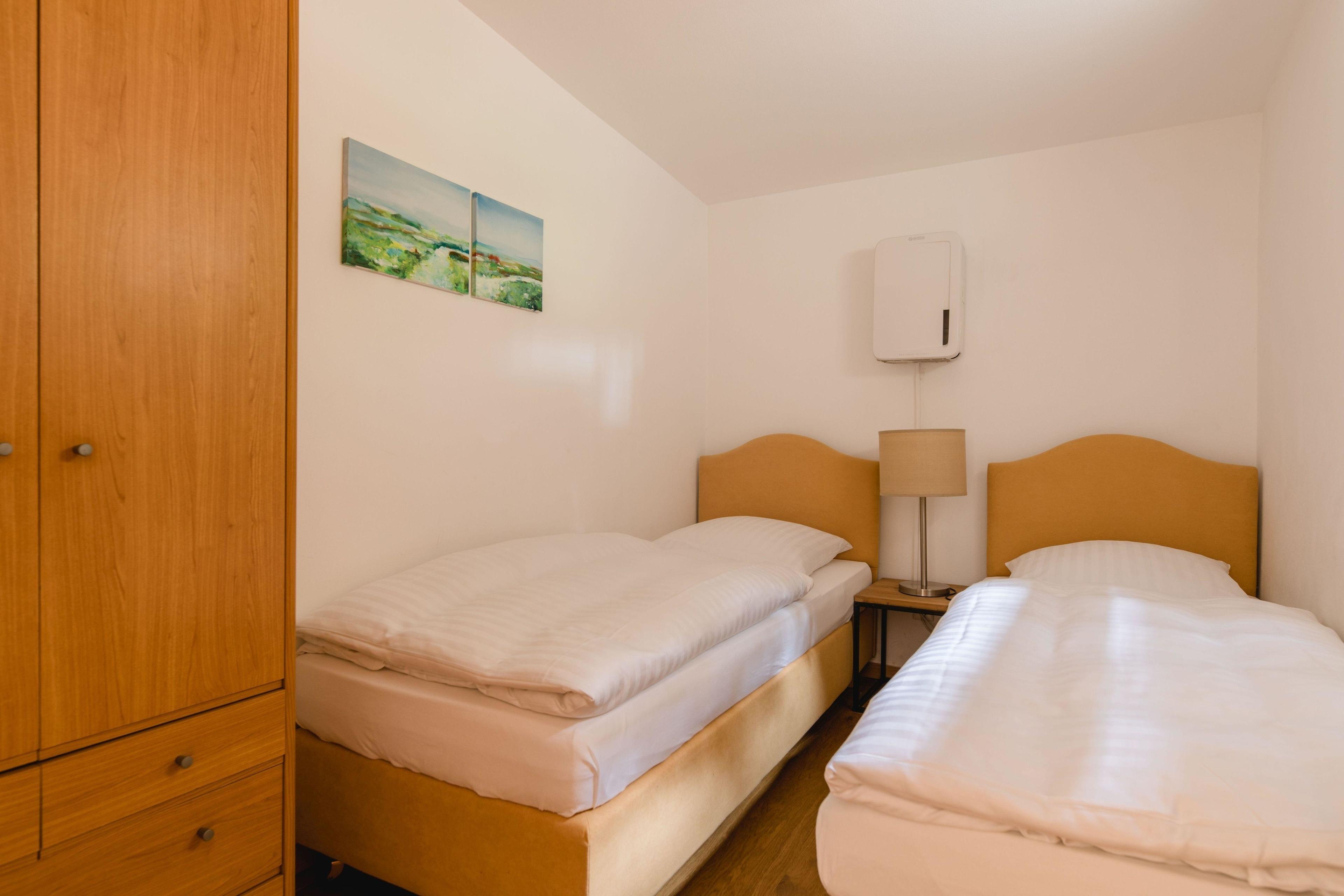 Die zwei Schlafzimmer sind mit aus führenden Hotels bekannten "Boxspringbetten", welche wahlweise als Doppel- oder als Einzelbett gestellt werden können, ausgestattet.