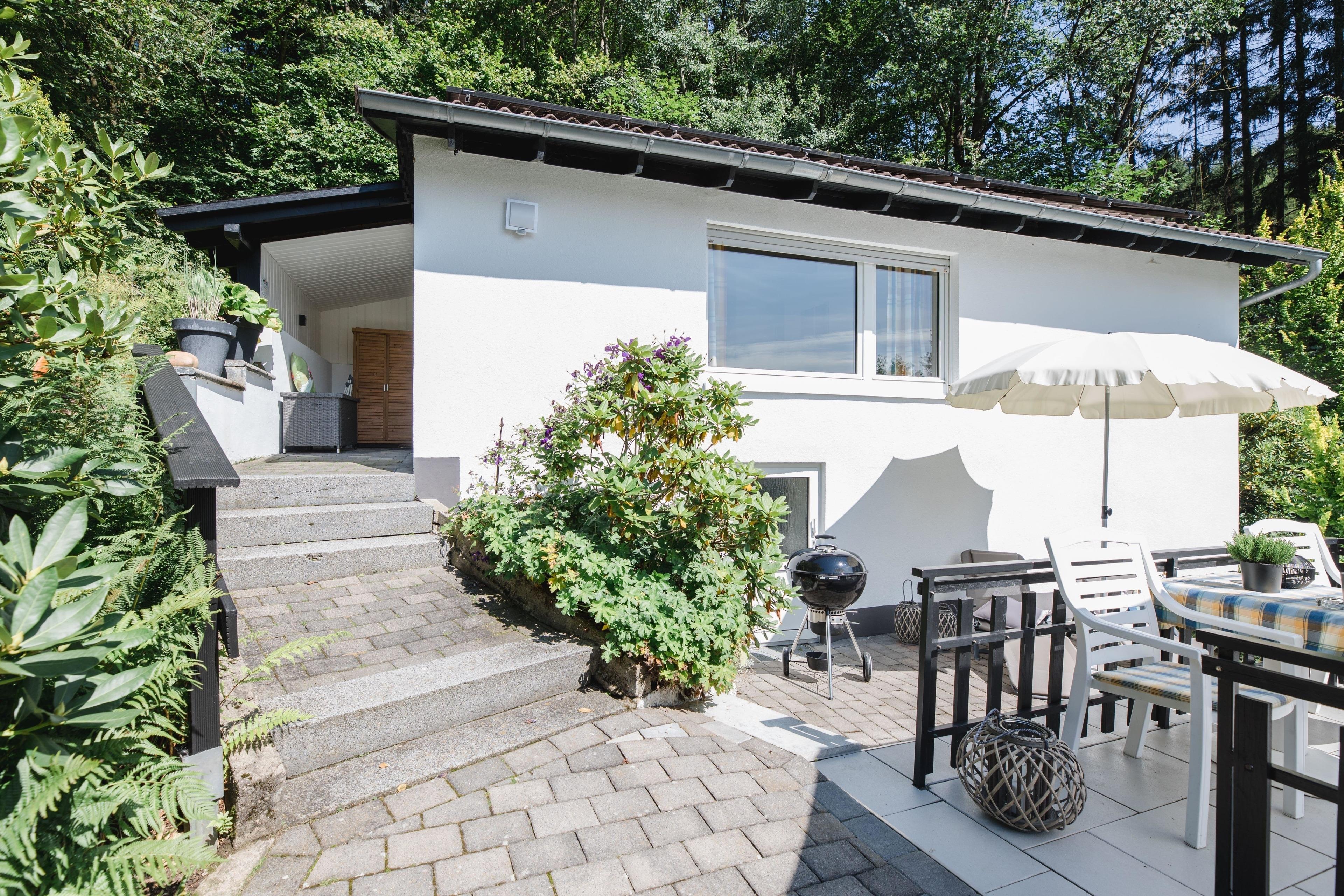 Sie werden den Ausblick aus den großen Panoramafenstern und von der geräumigen Terrasse lieben. Urlaub pur verspricht dieses kleine Ferienhaus mit seiner ruhigen Lage direkt am Wald und der modernen Ausstattung. Ein gemütliches Wohnzimmer mit Essecke und Küchenzeile sowie die angrenzende Liegewiese heißen Sie herzlich willkommen. Ein besonderes Highlight ist die Außensaunacota mit Dusche, die Sie kostenlos nutzen können.