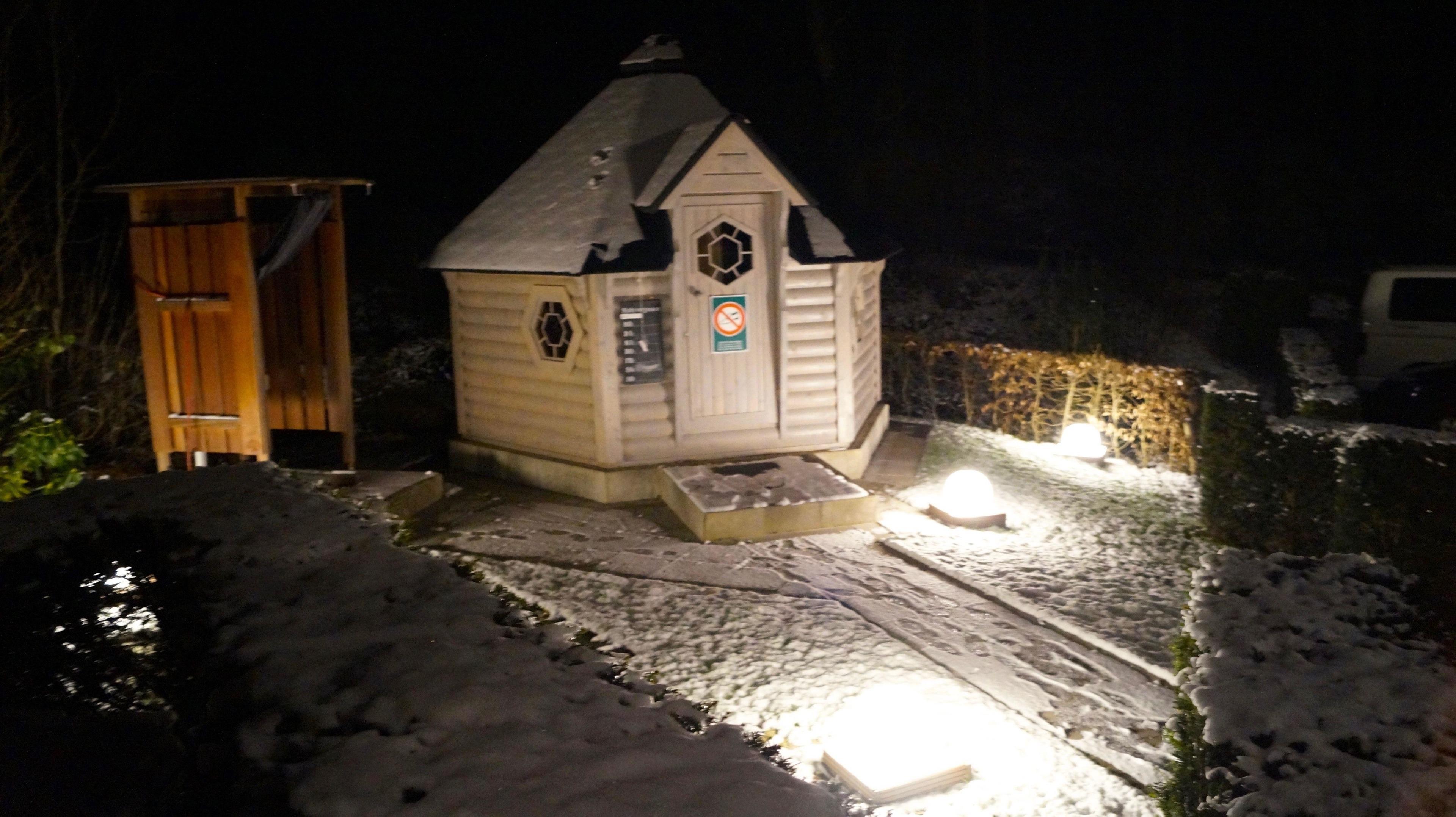 Schöne Terrasse mit Gartenmöbeln mit einem 4,00 m großen Sonnenschirm, Markiese und einem Grillkamin. Eine mit Lampen ausgestatteten Liegewiese mit Aussensauna und Aussendusche (mit Haus Panorama mit Termin zur eigenen Nutzung ) usw. eingerichtet.