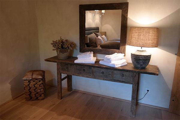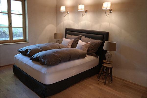 Auch wenn die Einrichtung rustikal ist, ist für den guten Schlaf bestens gesorgt. Unsere Gäste finden in den drei Schlafzimmern gemütliche und hochwertige Boxspringbetten und wohlige Wärme. Für zwei weitere Personen besteht die Möglichkeit auf hochwertigen Hotelzustellbetten mit Federkernmatratze zu übernachten. Hier kann man in Daunendecken gekuschelt gut abschalten, schlafen und erholt erwachen.