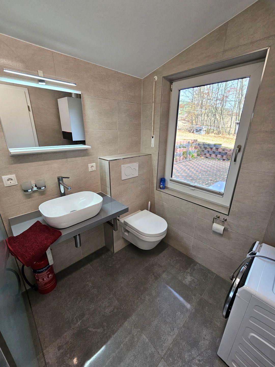 Bad mit ebenerdiger Dusche & Waschmaschine