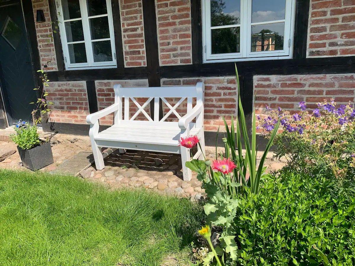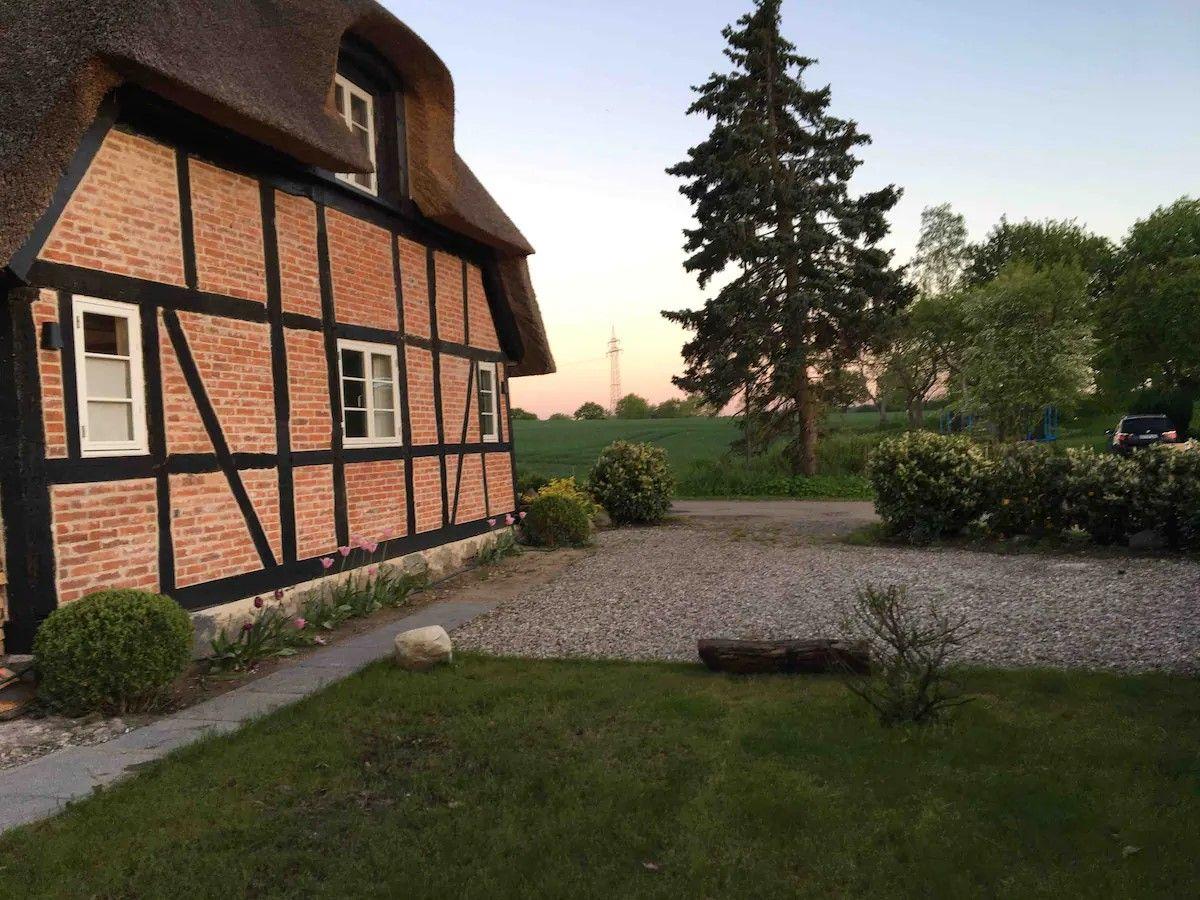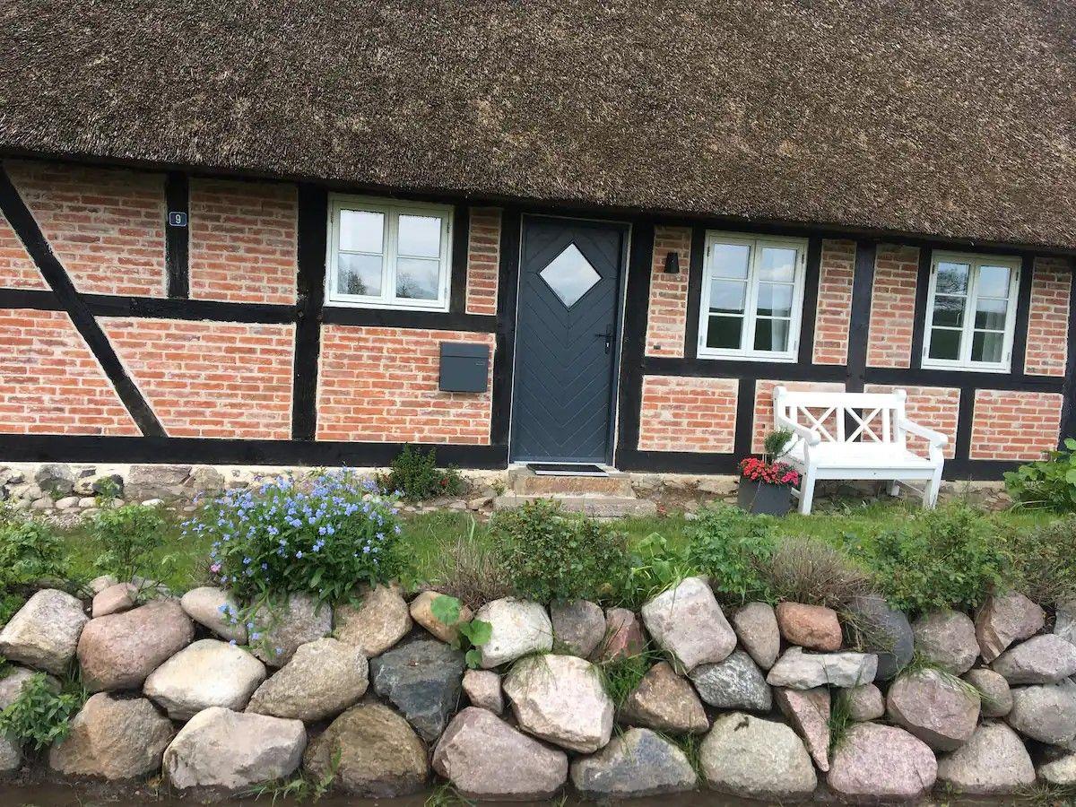 Reetgedecktes Fachwerkhaus von 1840, liebevoll saniert, 100 qm, 430 qm Grundstück, bis 6 Personen. Offener Wohn-Küchenbereich mit Kamin, hohe Decken, moderne Ausstattung, sichtbare Balken. Fußbodenheizung, Dielenparkett in Schlafzimmern. Helles Bad mit großer bodengleicher Dusche. Obergeschoss mit offenem Wohn-Schlafbereich, dänische Holzfenster. Streaming-TV, Haustiere erlaubt. In Holsteinischen Schweiz.