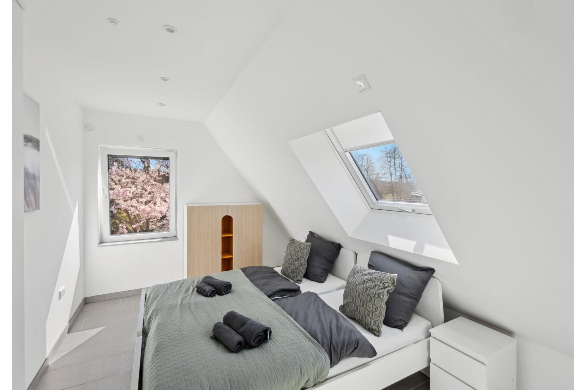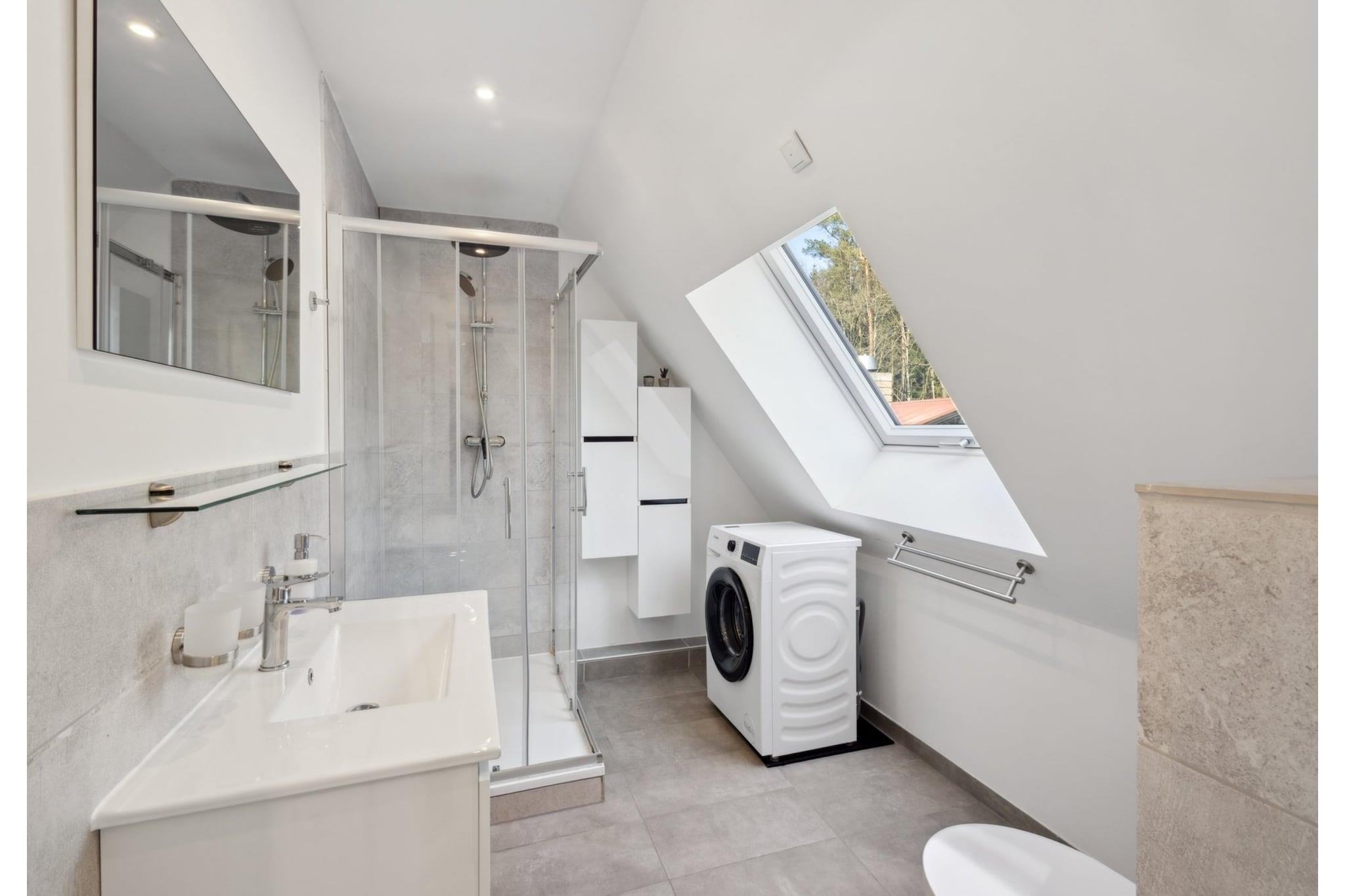 På 1. etage: (åbent køkken(elkedel, komfur, kaffemaskine, opvaskemaskine , køle-fryseskab), stue / spisestue(dobbeltsovesofa, Fjernsyn(Smart-TV), spisebord, sofahjørne, radio), soveværelse(dobbeltseng), soveværelse(enkeltseng, enkeltseng), badeværelse(bruser, håndvask, toilet, føntørrer)) vaskemaskine, varme(elektrisk, gulvvarme), terrasse, have(deles med ejer og andre gæster), havemøbler, grill, parkering, barnestol, baby crib(free), Vaskeripakke mod et gebyr