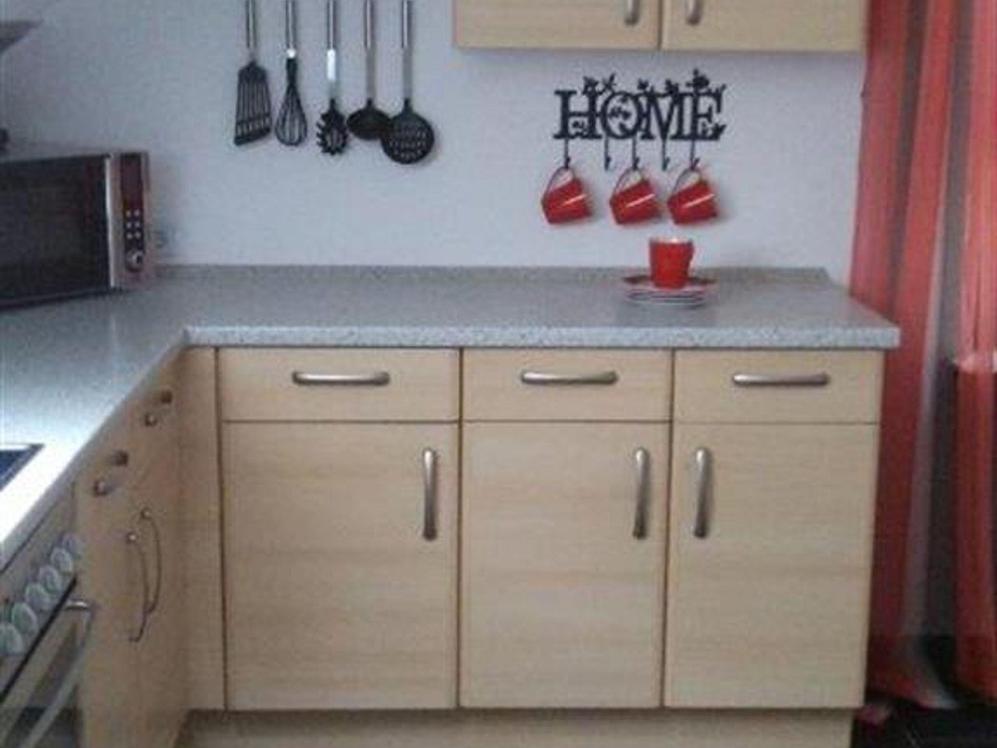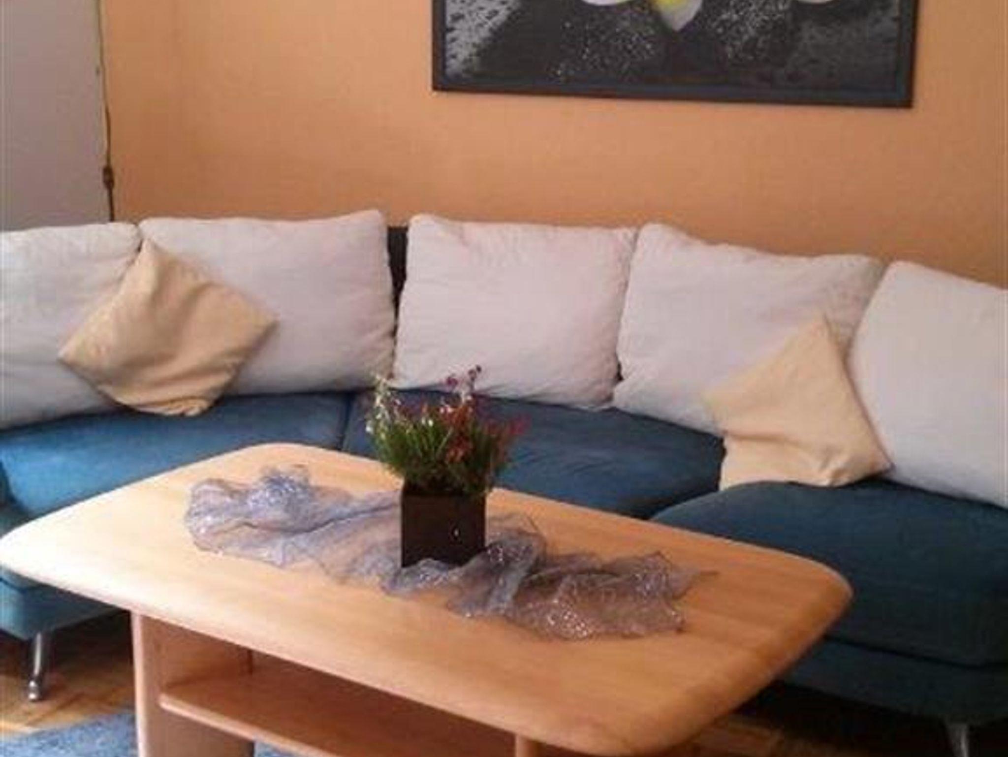 Hell und freundlich eingerichtete Ferienwohnung für bis zu fünf Personen. Es erwartet Sie eine großzügige Diele, eine vollausgestattete Küche, ein kombinierter Wohn-/ Schlafraum, ein Zimmer mit einem Einzelbett und einem ausziehbaren Sofa sowie ein Bad mit Badewanne und Bidet und ein Bad mit Dusche.