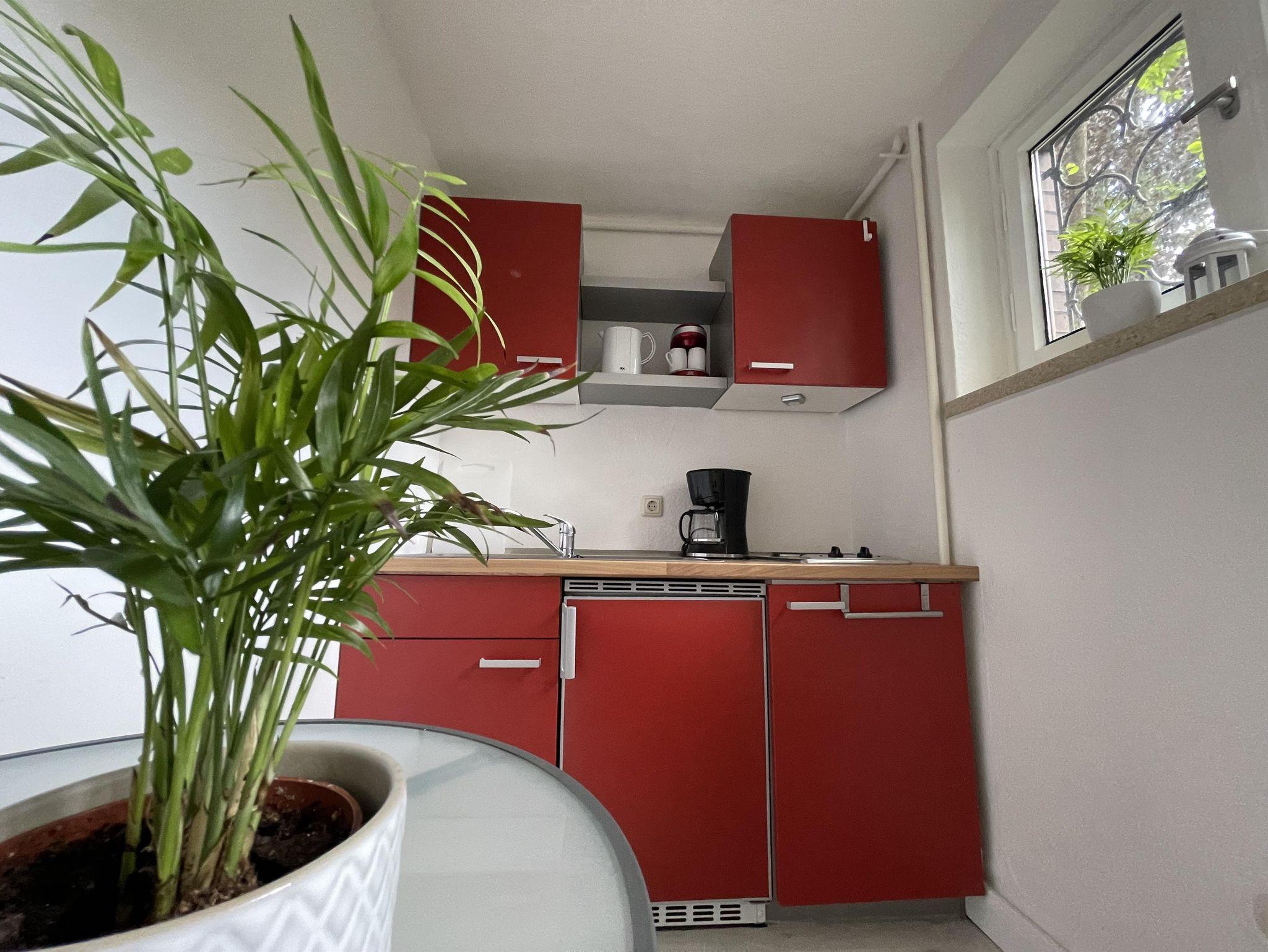 Appartement mit Wohn-Schlafraum in ruhiger Wohnlage. Großer Garten mit Gartenmöbeln und reetgedecktem Gartenhaus.