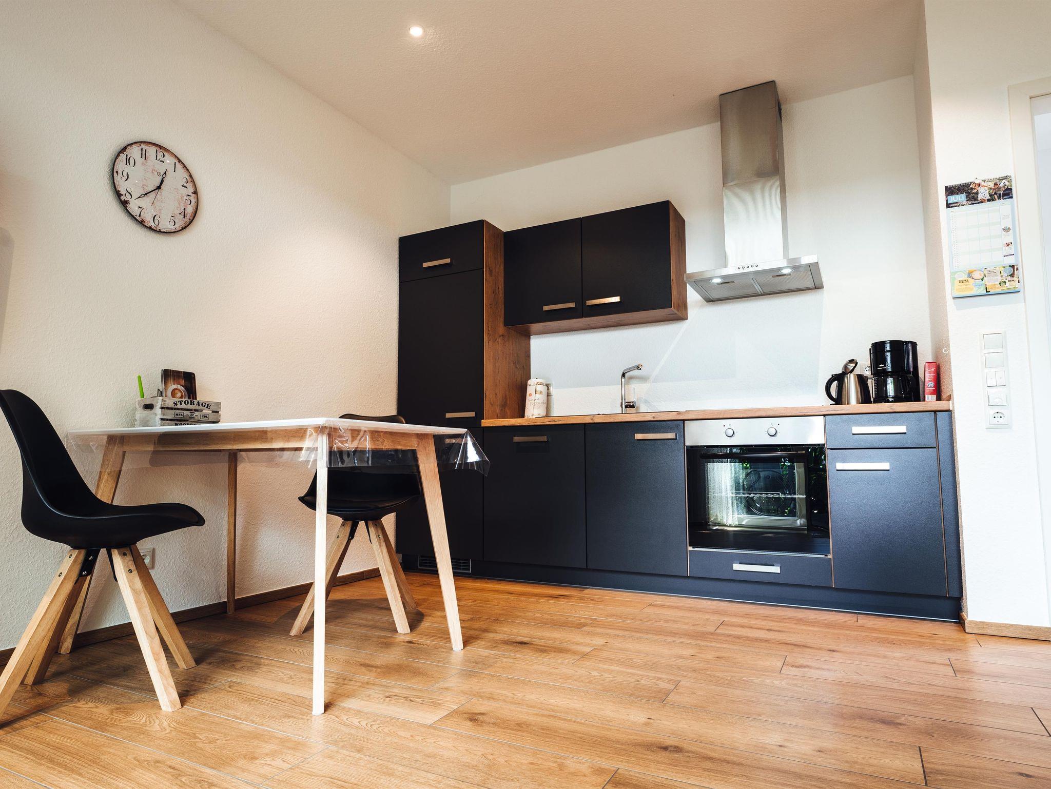 Die hell und stilvolll eingerichtete Ferienwohnung für zwei Personen, befindet sich im Erdgeschoss des Ferienhauses. Sie verfügt über eine komplett eingerichtete Küchenzeile im Wohn-Essbereich, ein Schlafzimmer mit einem Doppelbett sowie ein Bad mit WC und Dusche. Genießen Sie die Ruhe und Sonne auf der möblierten Terrasse.
