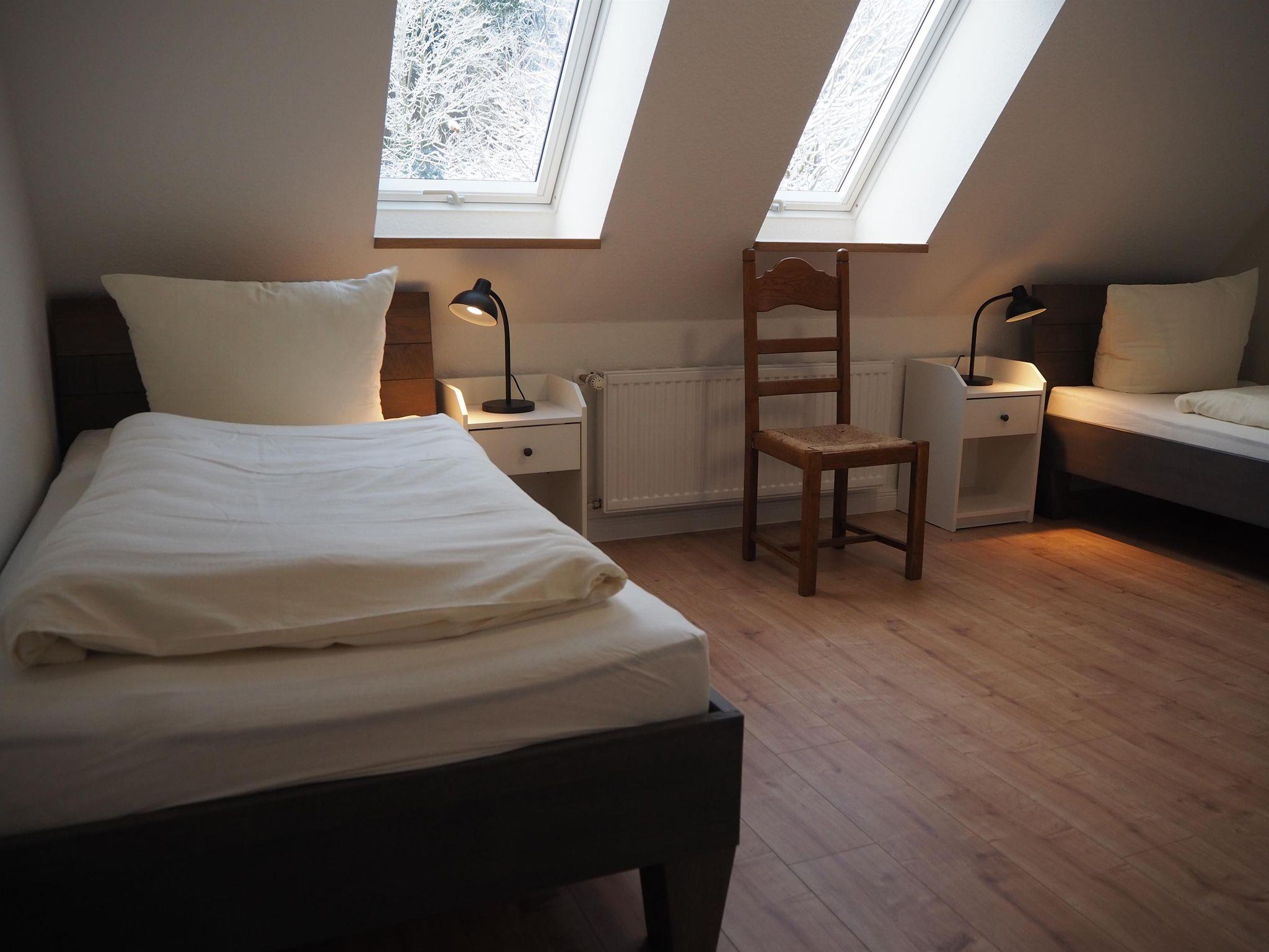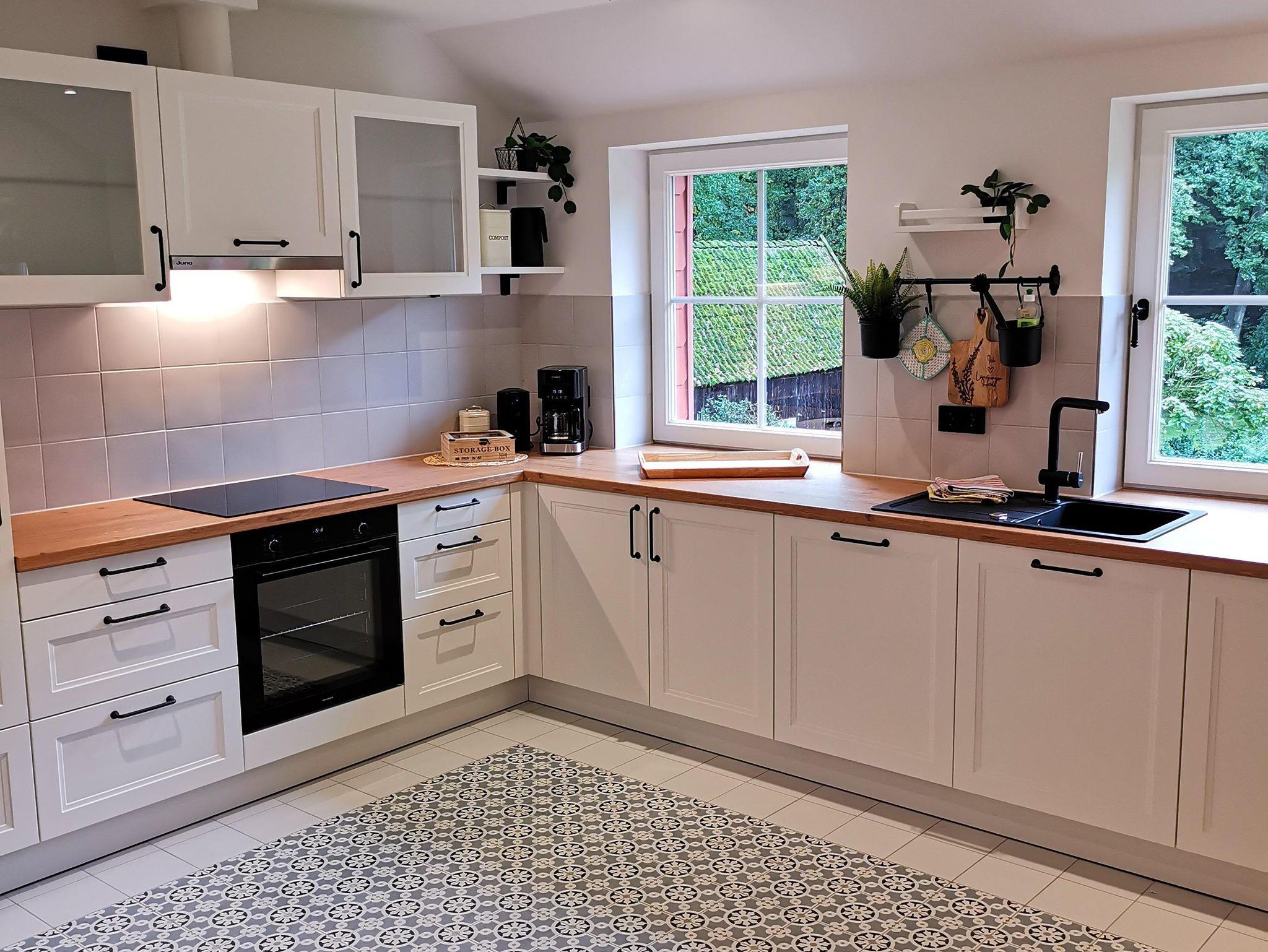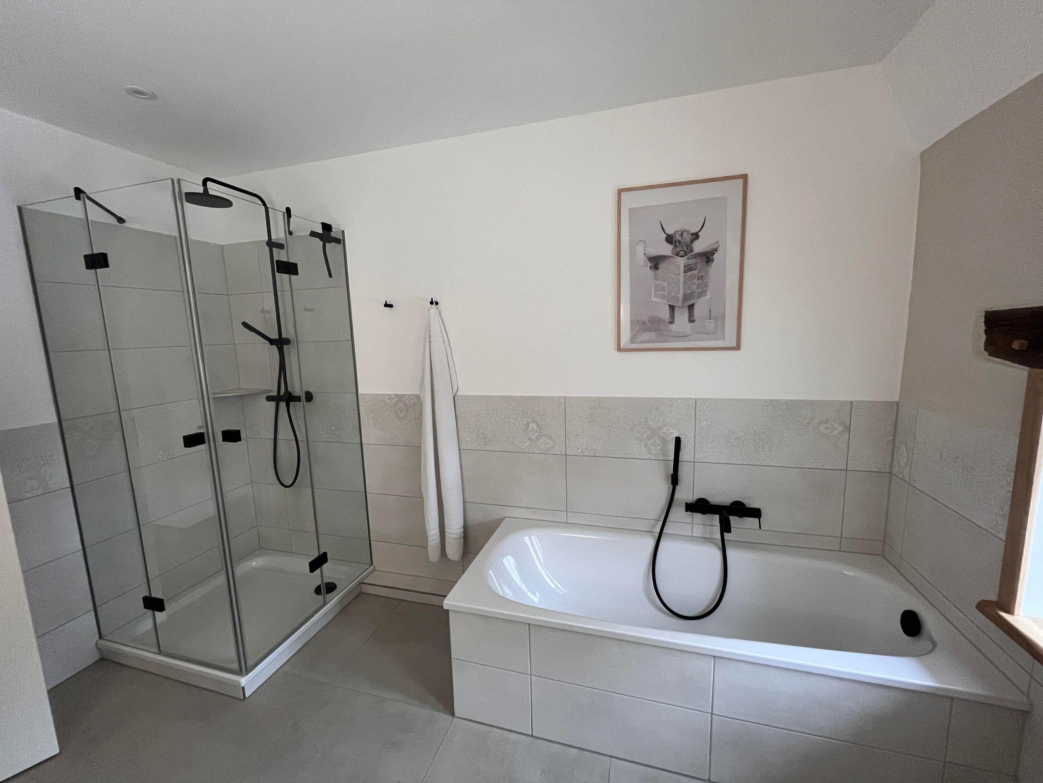 Die Wohnung ist im Obergeschoss des alten Fachwerkhauses über eine Treppe zu erreichen. Der große offene Wohn- und Essbereich in einem modernen Landhausstil, verleiht der Wohnung ein gemütliches Wohnambiente. Vier Schlafzimmer und zwei Bäder (eines davon mit Badewanne) runden die Wohnung ab.
