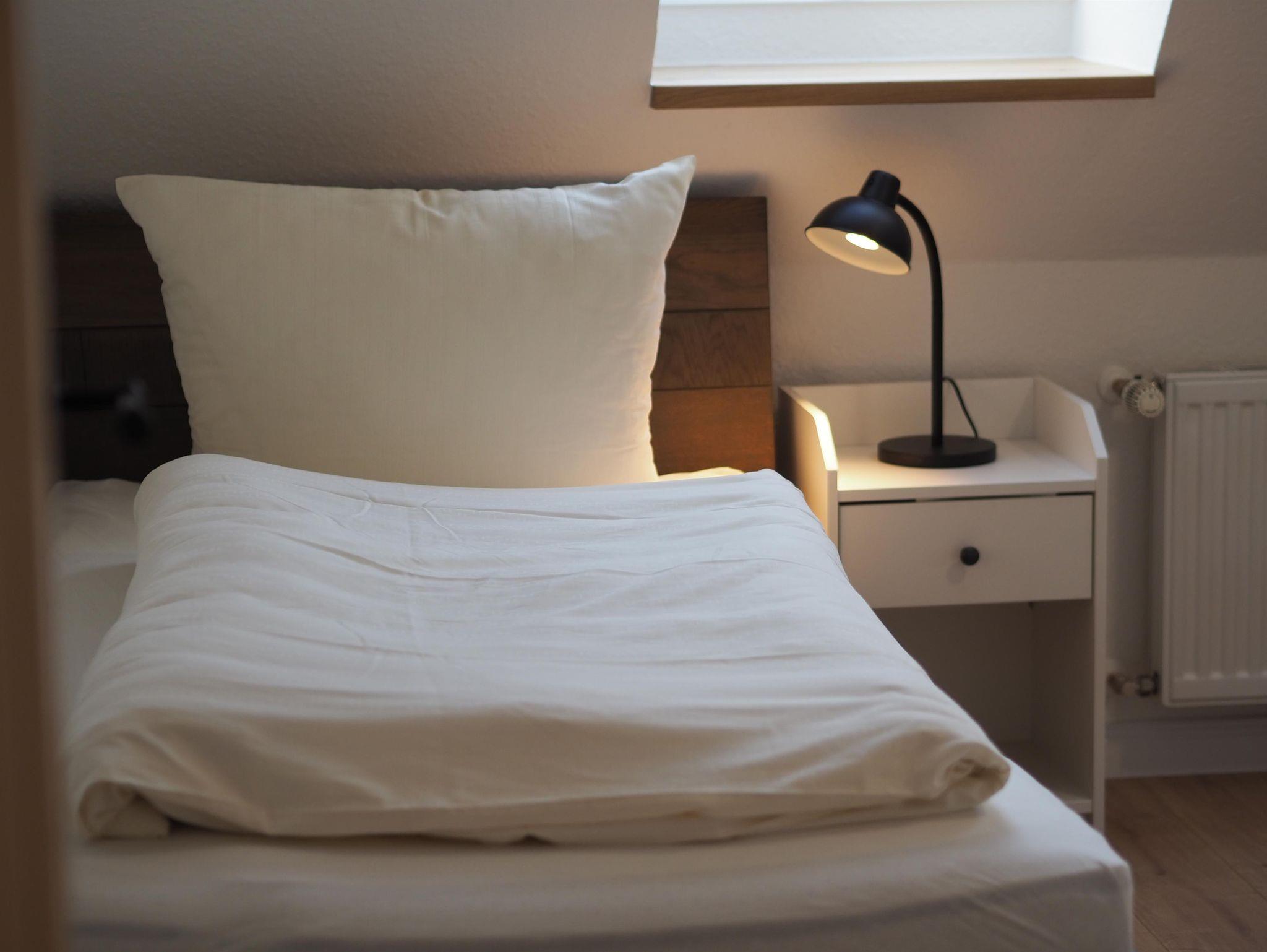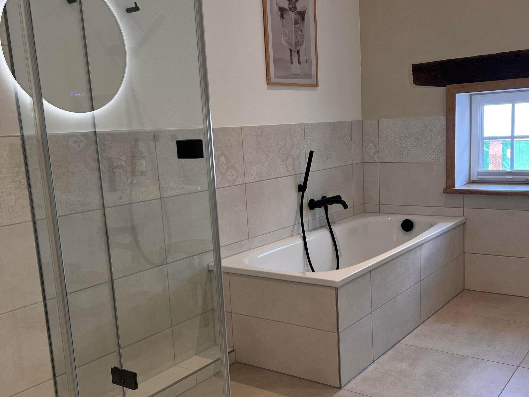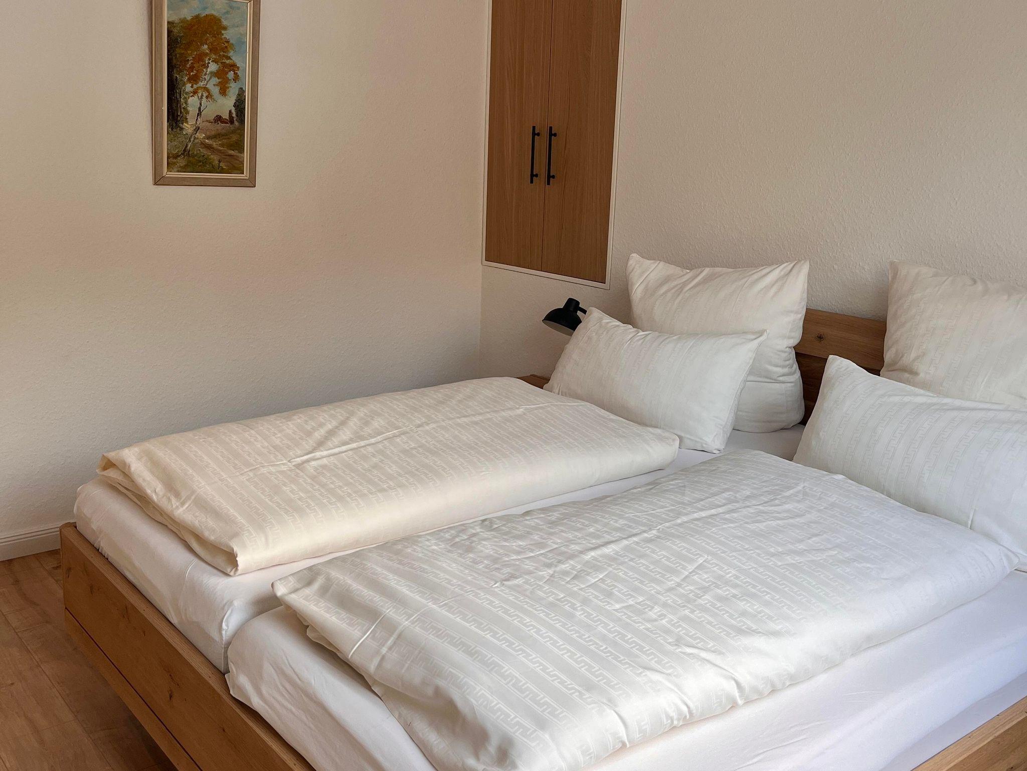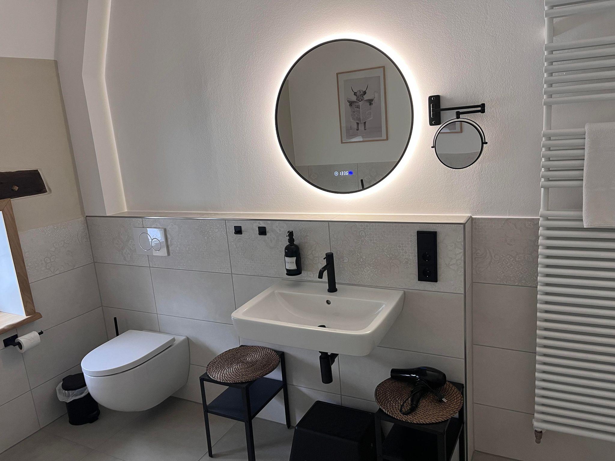 Die Wohnung ist im Obergeschoss des alten Fachwerkhauses über eine Treppe zu erreichen. Der große offene Wohn- und Essbereich in einem modernen Landhausstil, verleiht der Wohnung ein gemütliches Wohnambiente. Vier Schlafzimmer und zwei Bäder (eines davon mit Badewanne) runden die Wohnung ab.