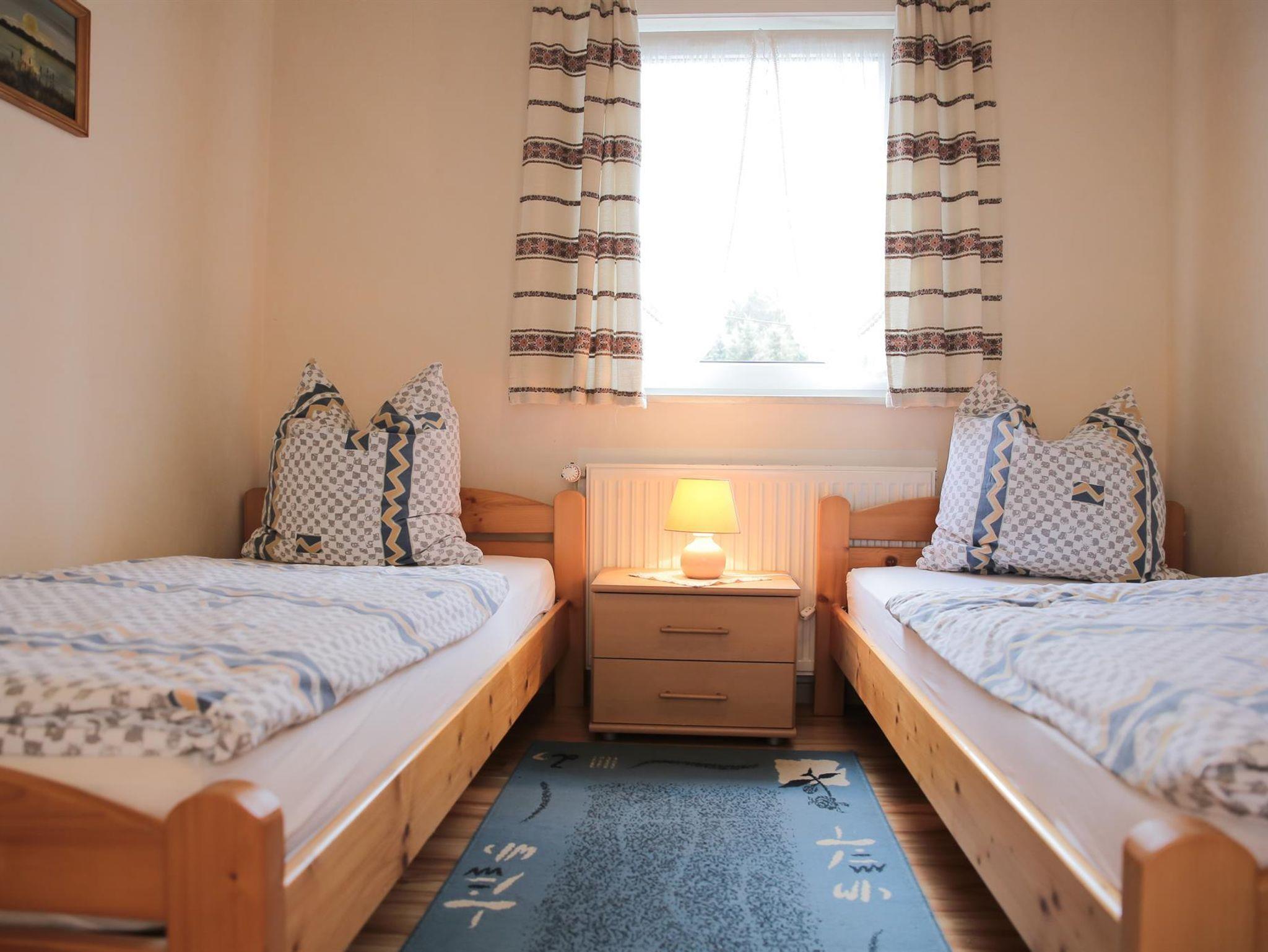 Die hell und freundlich eingerichtete Ferienwohnung verfügt über eine vollausgestattete Küche, ein Schlafzimmer mit einem Doppelbett, ein Schlafzimmer mit zwei Einzelbetten, ein Bad mit Dusche und WC.