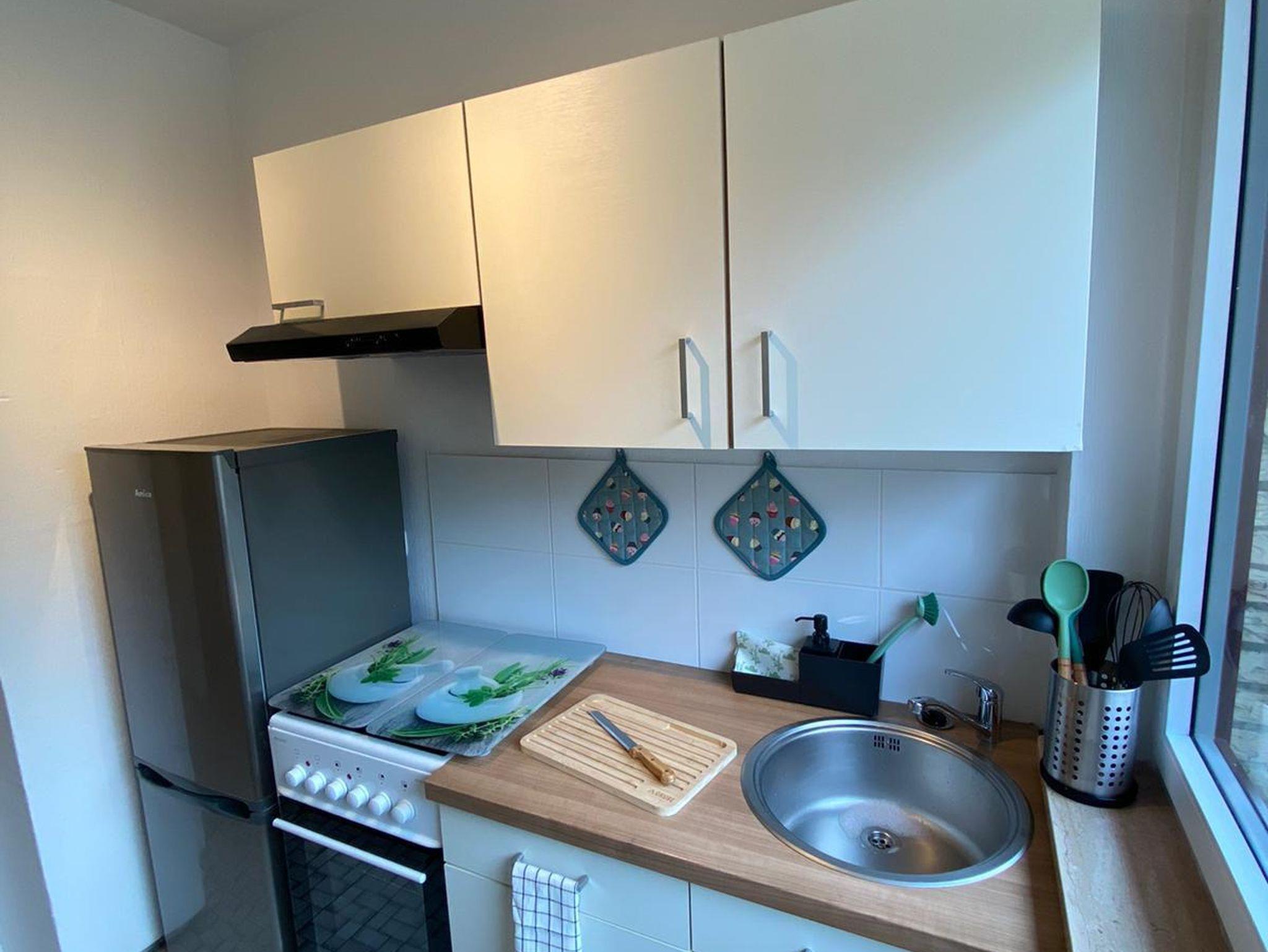 Das hell und modern eingerichtete Apartment befindet sich im 1.OG und bietet einen Parkplatz direkt vor dem Haus. Es bietet ausreichend Platz für bis zu 4 Personen. Das Apartment verfügt über eine voll ausgestattete Küche, ein Schlafzimmer mit einen Doppelbett, ein Wohnzimmer mit Flachbildfernseher, Essbereich und Schlafsofa für 2 Personen sowie ein Bad mit Duschwanne und WC.