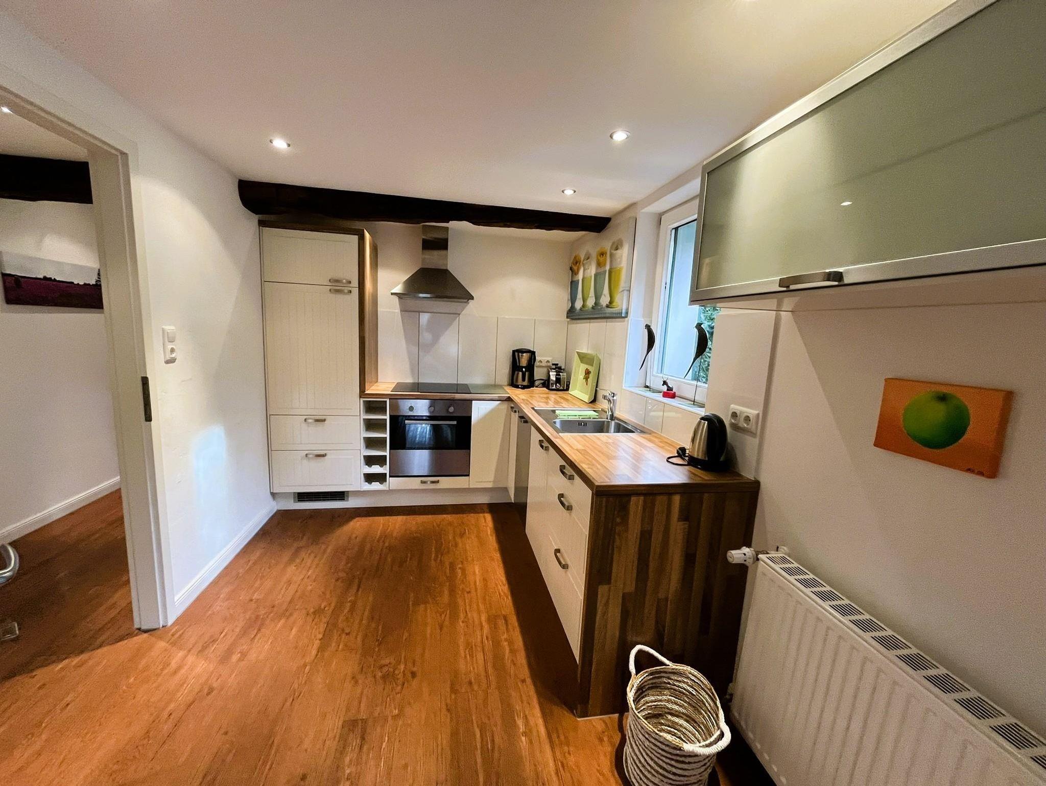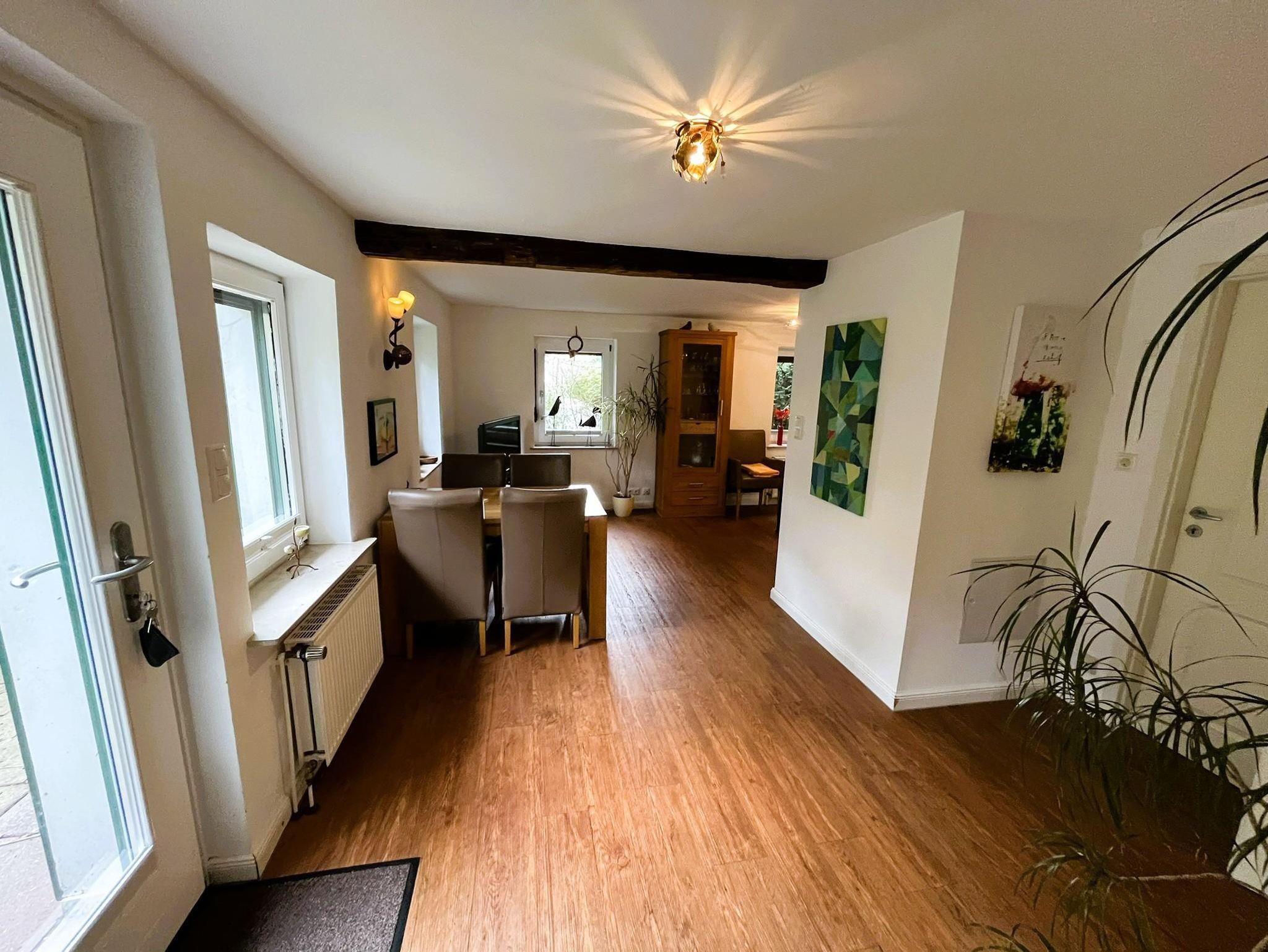 Das liebevoll restaurierte Reetdachhaus befindet sich trotz Stadtnähe in einer ruhigen Lage und verfügt über einen idyllischen Naturgarten mit Terrasse.
