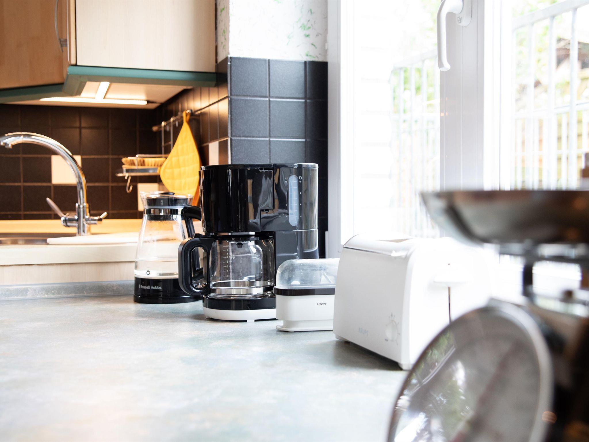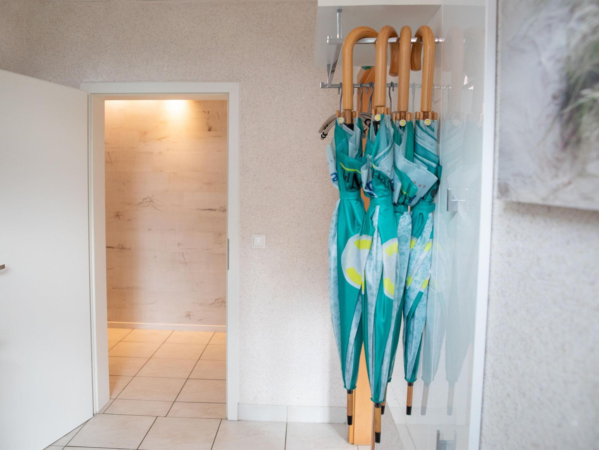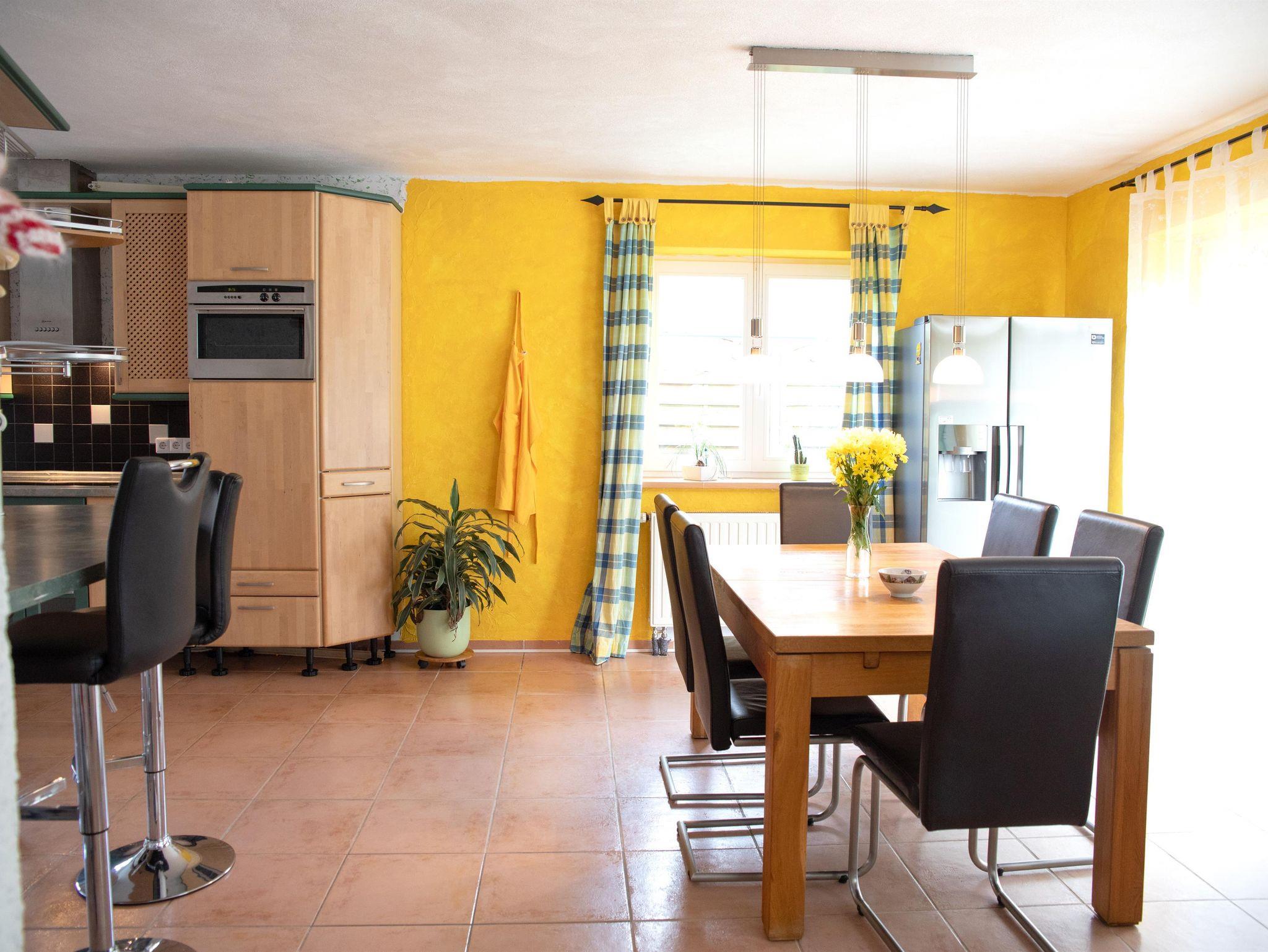 Die hell und gemütlich eingerichtete Ferienwohnung befindet sich im Erdgeschoss eines Einfamilienhauses. Sie verfügt über eine komplett eingerichtete Wohnküche mit Side by Side Kühlschrank, Eiswürfelspender und Kaffeevollautomaten sowie ein Esszimmer, eine Wohnzimmergarnitur und einen offenen Kamin und ein Schlafzimmer mit einem Doppelbett. Das große Bad ist mit einer Badewanne mit Whirlpool und integrierter Dusche, einem Waschtisch, einem Handtuchwärmer und einer Infrarotsauna ausgestattet. Das separate WC befindet sich direkt neben dem Bad. Die Ferienwohnung wird durch eine Fußbodenheizung beheizt.