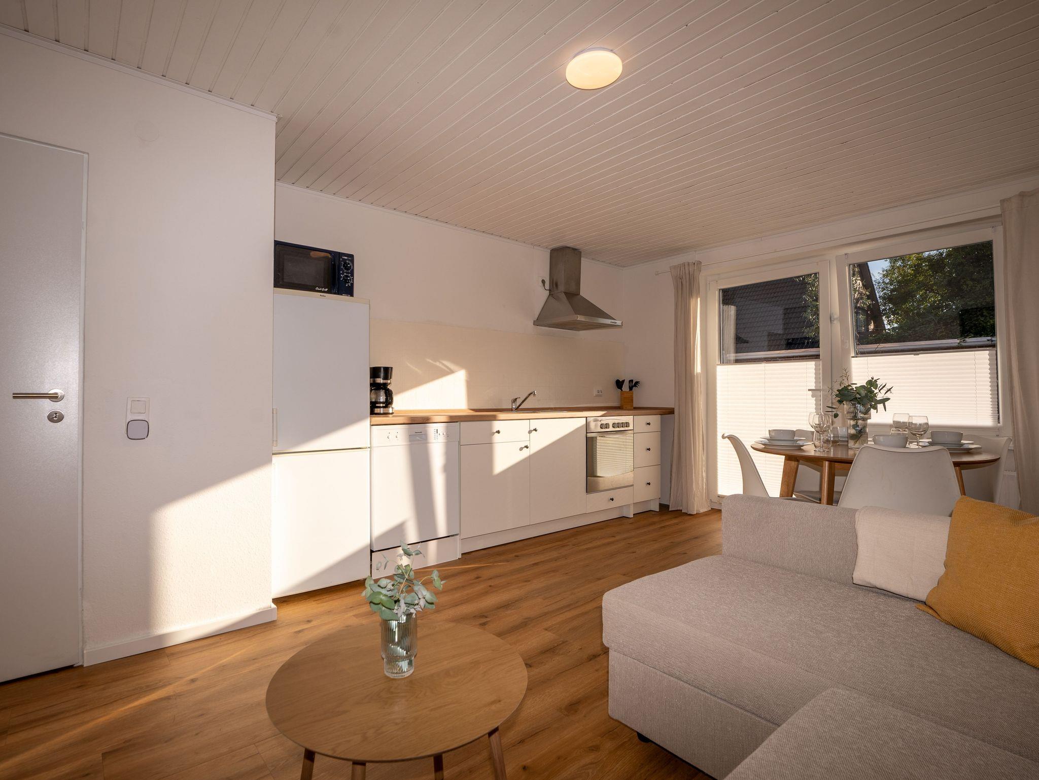 Willkommen im Haus No.17 - warme Farben, lichtdurchflutet und modern präsentiert sich das kleine ebenerdige Ferienhaus, dass an ein Einfamilienhaus angrenzt.