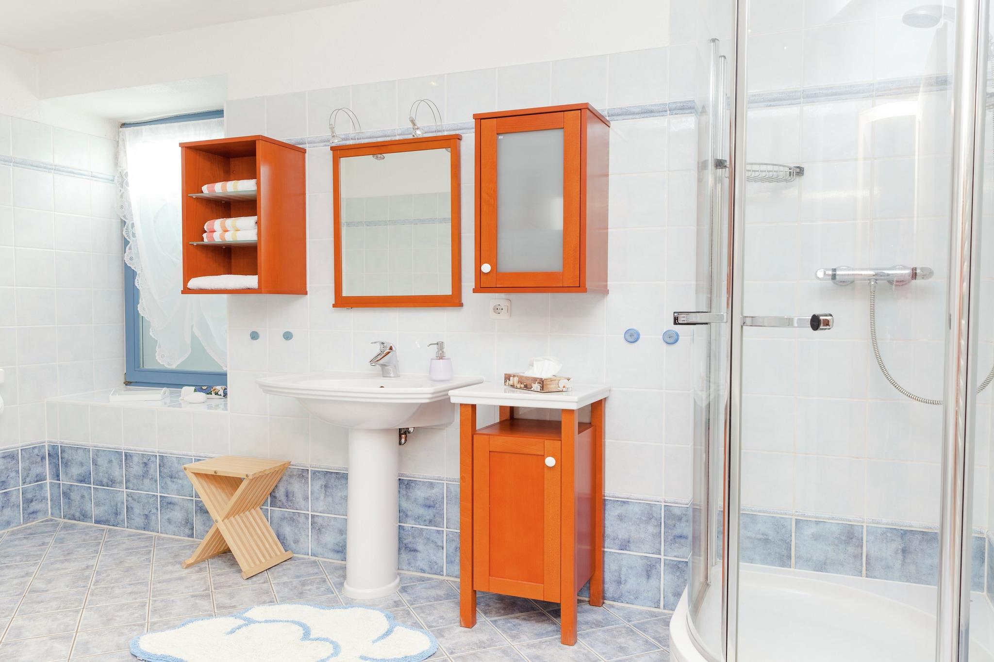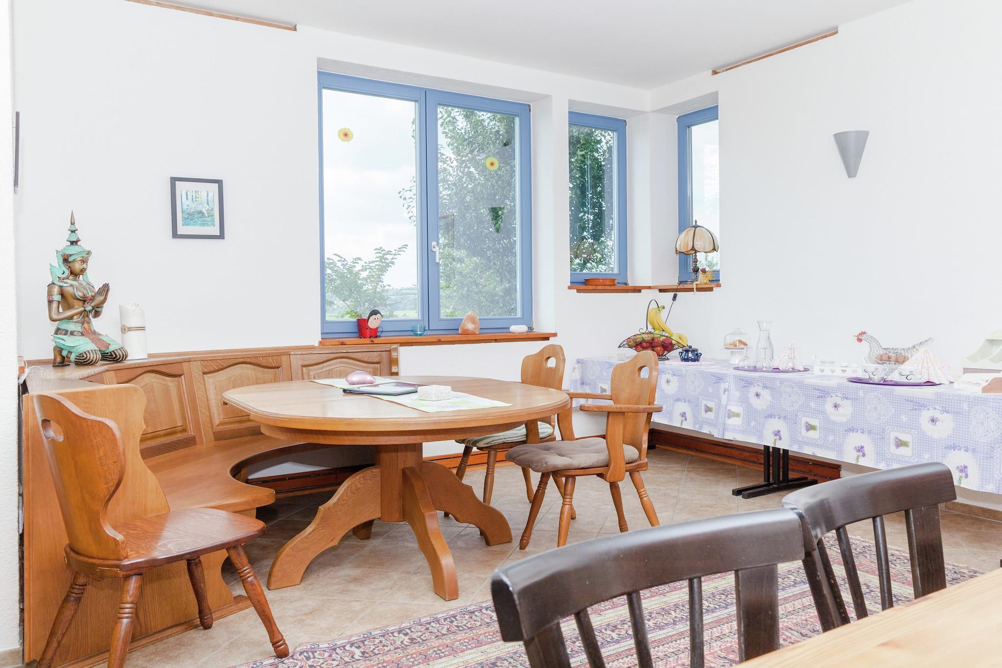 Beliggende i den fredelige landsby Michelbach (Schotten), denne eksklusive villa med 5 soveværelser kan rumme op til 15 gæster, hvilket gør den ideel til flere familier eller store grupper. Boligen har egen terrasse, brændeovn og infrarød sauna, der byder på hyggelig komfort og wellness i naturskønne omgivelser. Børn vil elske sandkassen, legeområderne og den tilgængelige højstol og barneseng, mens voksne kan slappe af på den møblerede terrasse eller nyde aftengrill. Villaen omfatter et fuldt udstyret køkken, flere badeværelser og rummelige opholds- og opholdsrum. I nærheden kan gæsterne udforske en sø til svømning og fiskeri, skovstier kun 500 m væk, og byens centrum 2 km væk med restauranter, natteliv og butikker. Offentlig transport er 300 m fra ejendommen, hvilket sikrer nem adgang til lokale attraktioner.