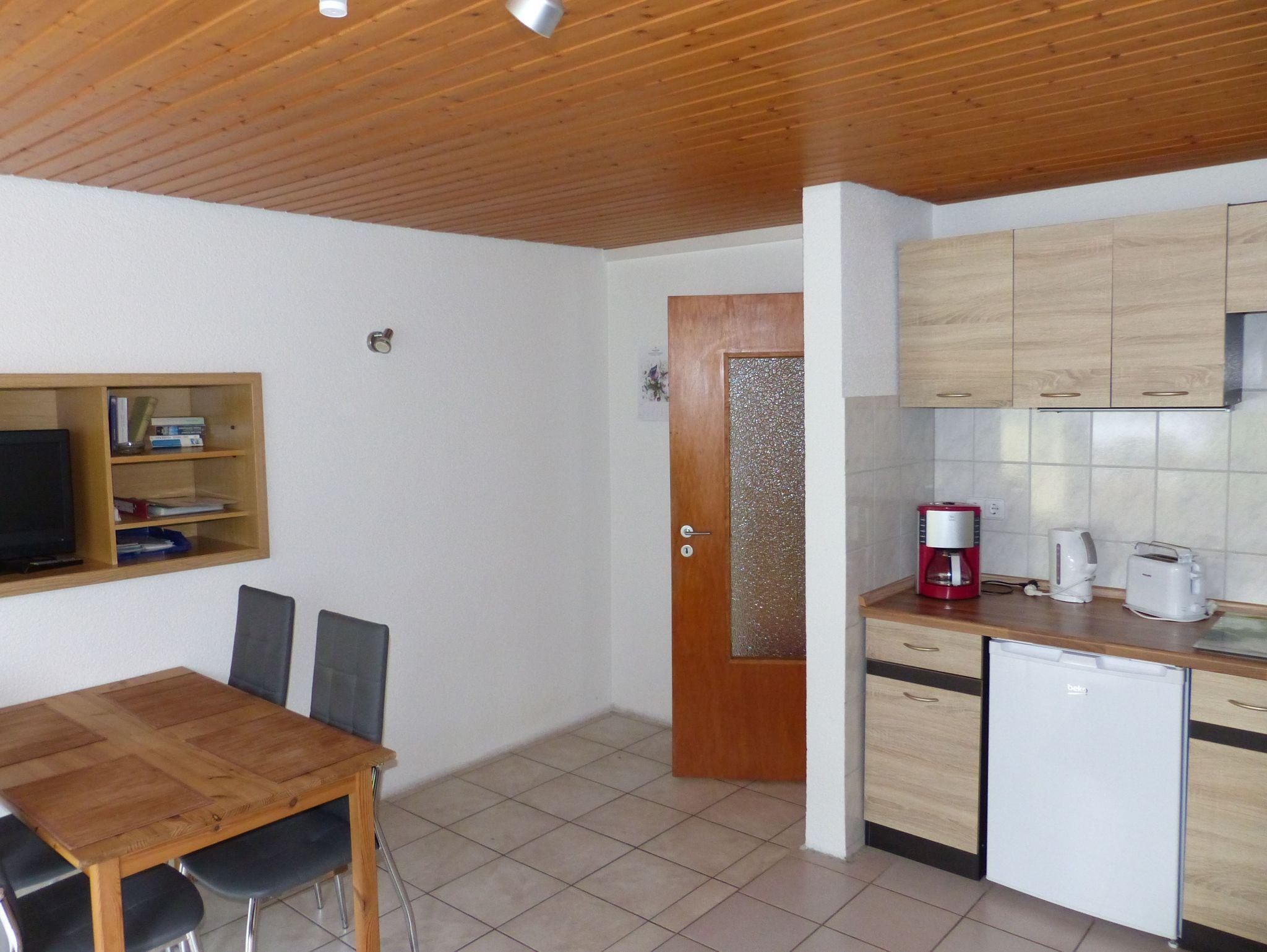 Die Ferienwohnung 1 Bärenhöhle besteht aus getrennten Wohn- und Schlafräumen und ist hell und freundlich eingerichtet. Ein Wohnzimmer mit Essecke sowie einer Küchenzeile und eine gemütlichen Sitzgruppe mit Sat-TV und Radio. Ebenso ein Kinderbett mit Bettwäsche.