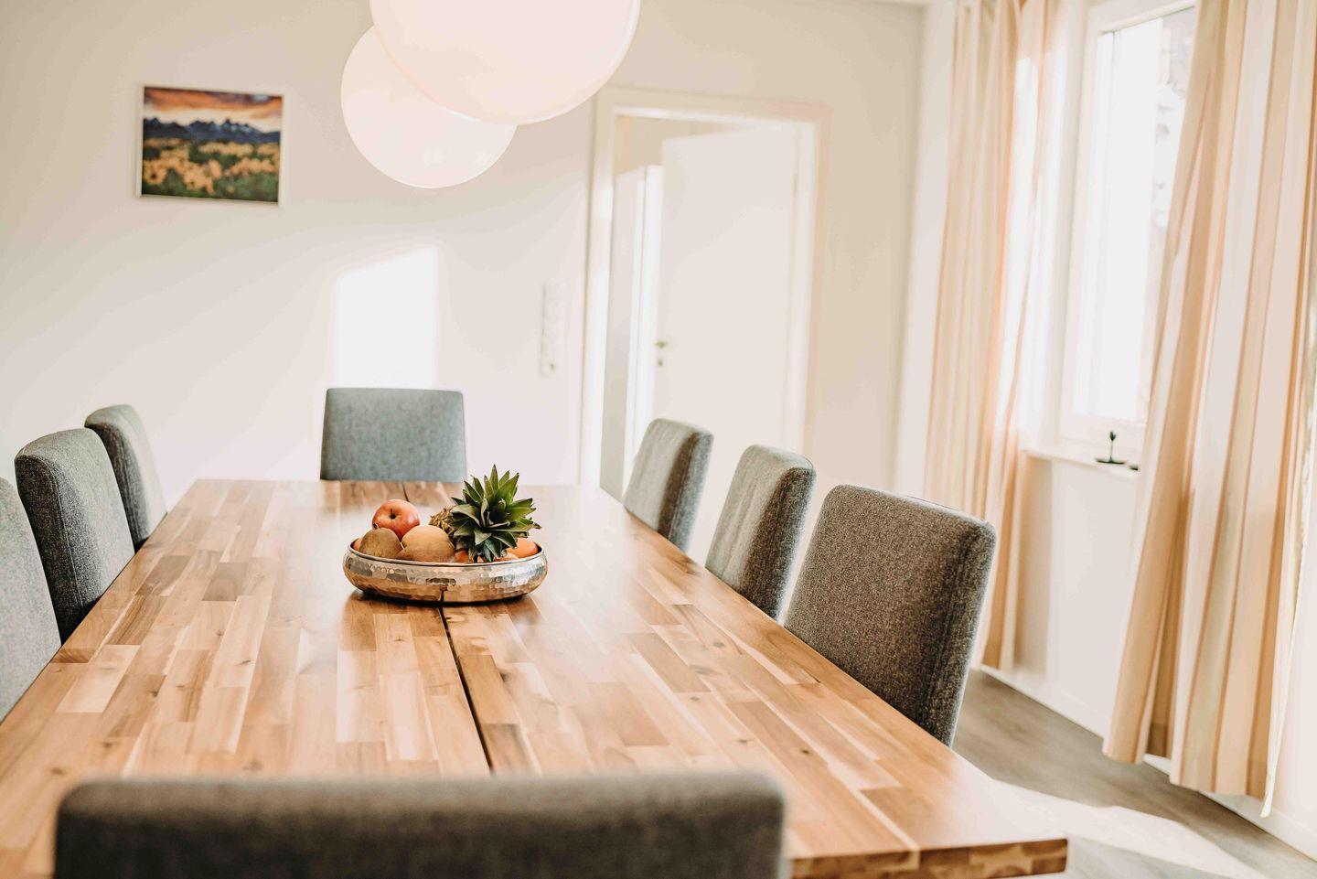 Die sehr gut ausgestattete Küche, mit Backofen, Ceran-Herd, Kühlschrank mit Gefrierfach, Mikrowelle, Geschirrspülmaschine, Kaffeemaschine, Wasserkocher und vielem mehr bietet alles für gemeinsame Mahlzeiten mit der Familie.