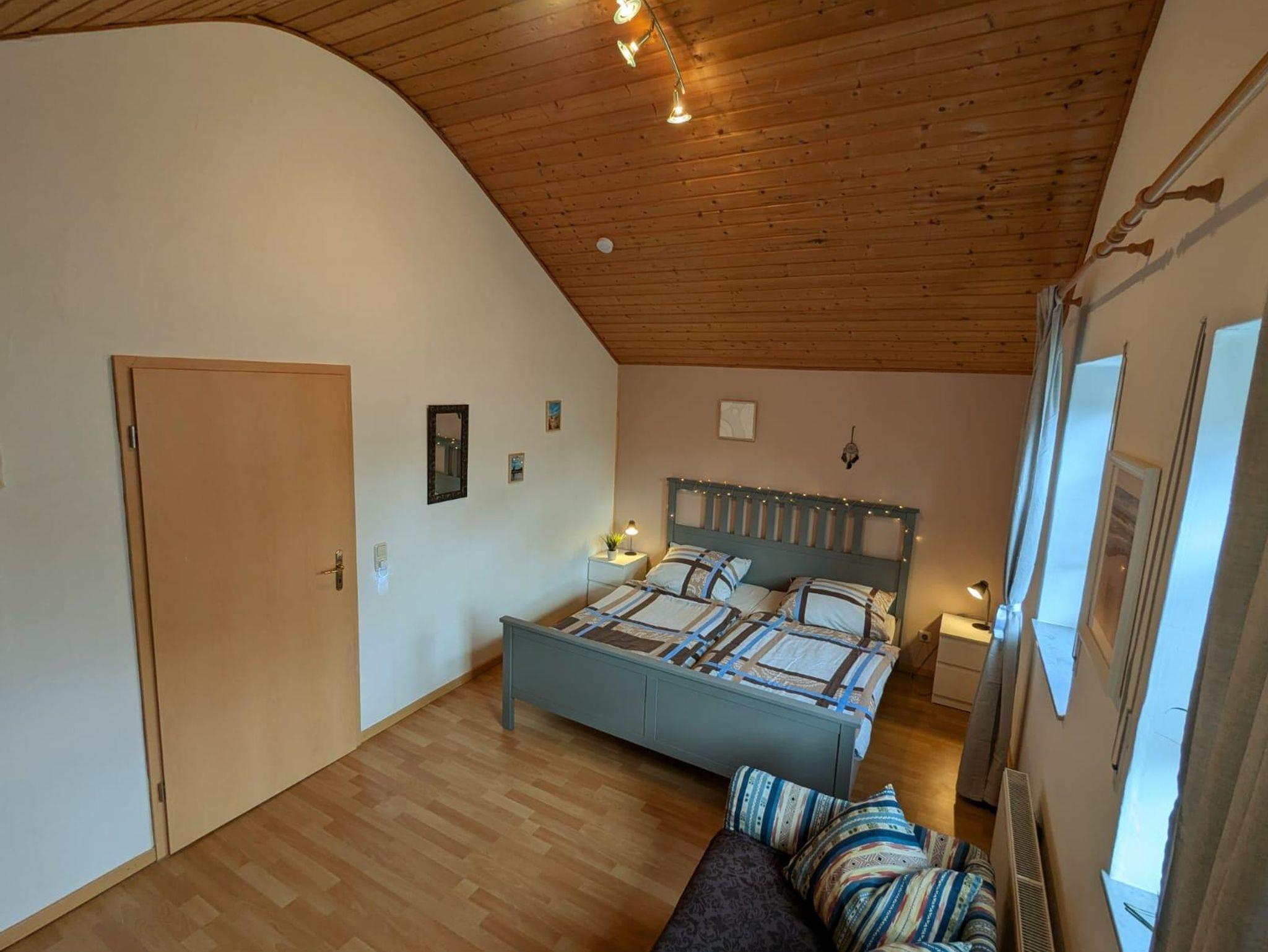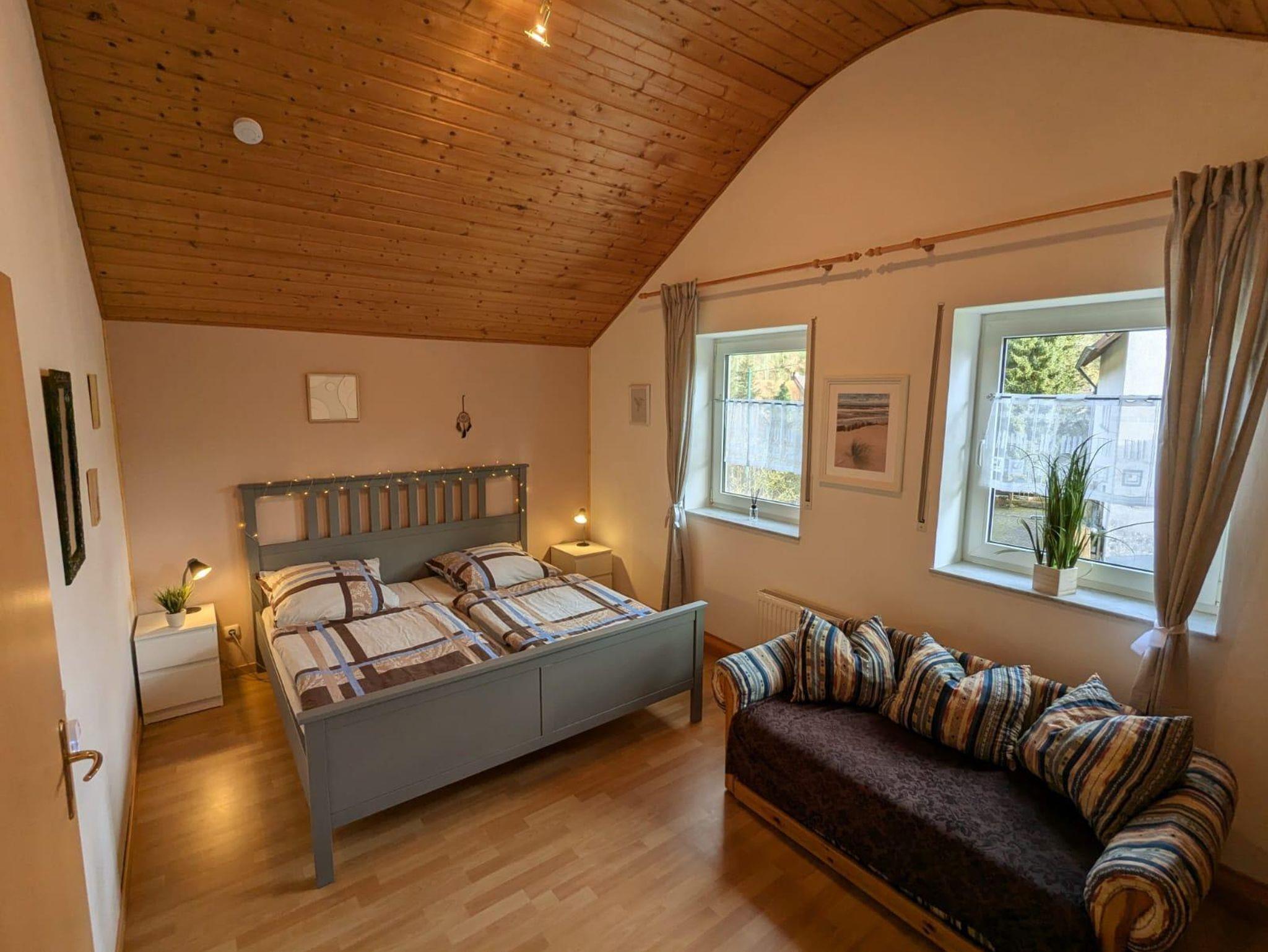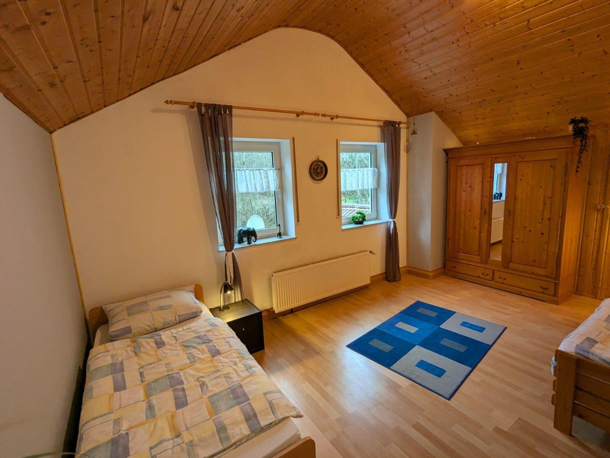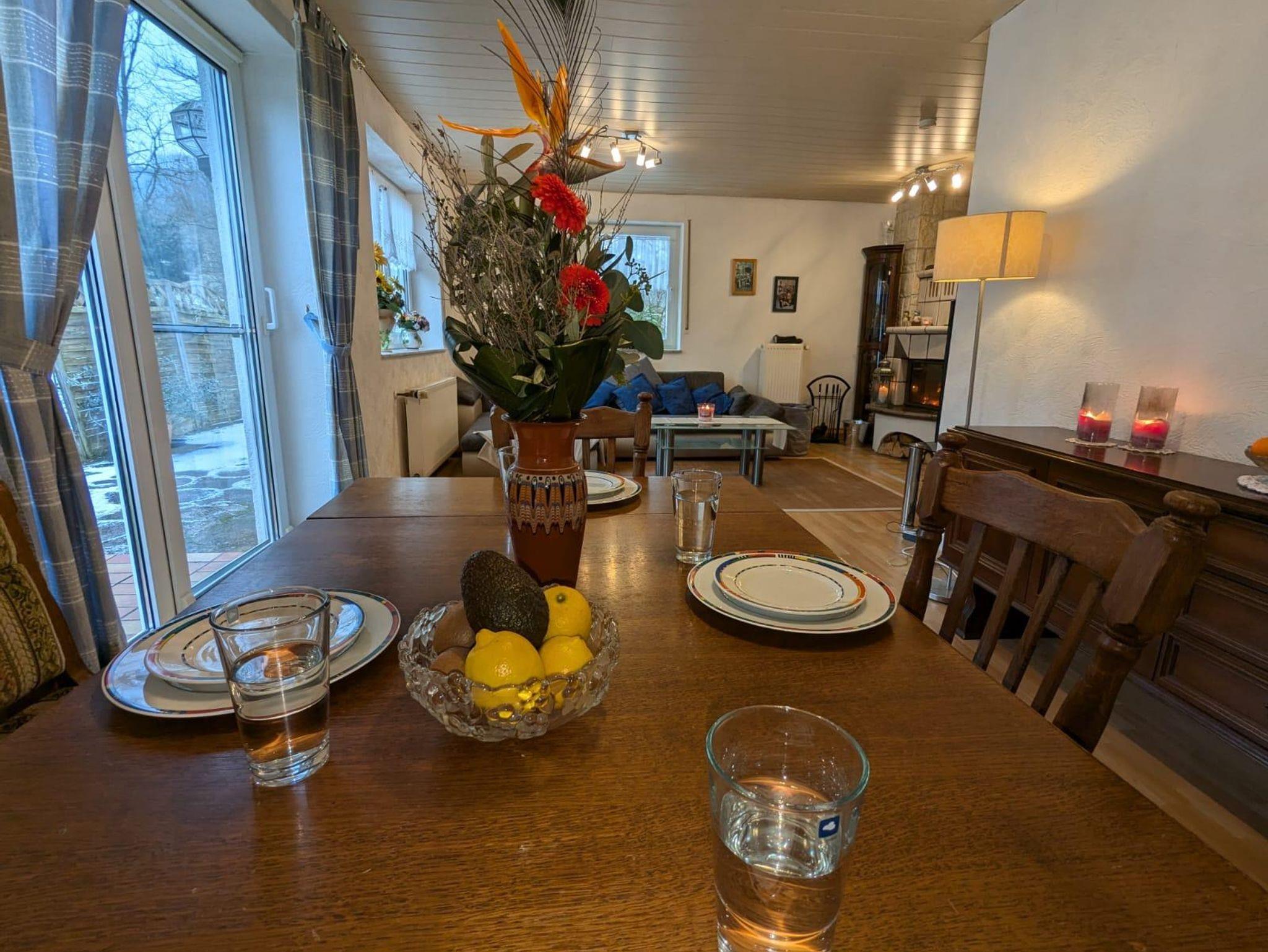 Liebe Gäste, unser Haus bietet, gerade für Familien, eine super Abwechslung zu dem Stress der Städte. Ein geräumiger und offener Küche-Ess-Wohnbereich, mit Blick in den Garten lässt Sie alles überblicken. Das Elternschlafzimmer im Erdgeschoss ist geräumig und bietet Platz für ein Kinderbettchen. Unten gibt es eine Toilette und ein separates Bad mit Badewanne, die zum genießen nach einer Waldwanderung einlädt. Im Obergeschoss finden Sie zwei weitere Schlafzimmer vor. Eines mit Doppelbett und das andere mit zwei separaten Betten. Ebenso ein weiteres Bad mit Dusche und WC.