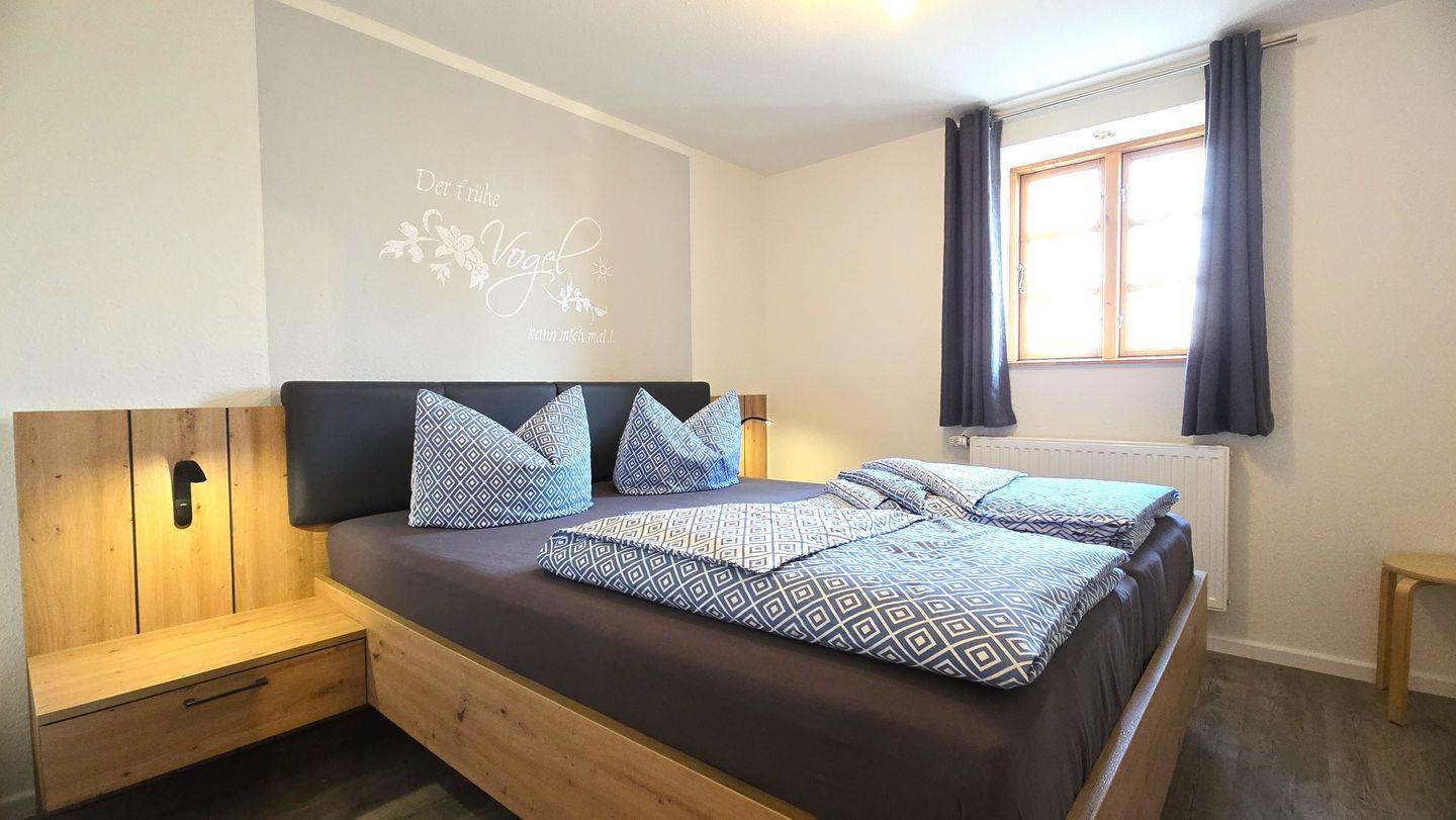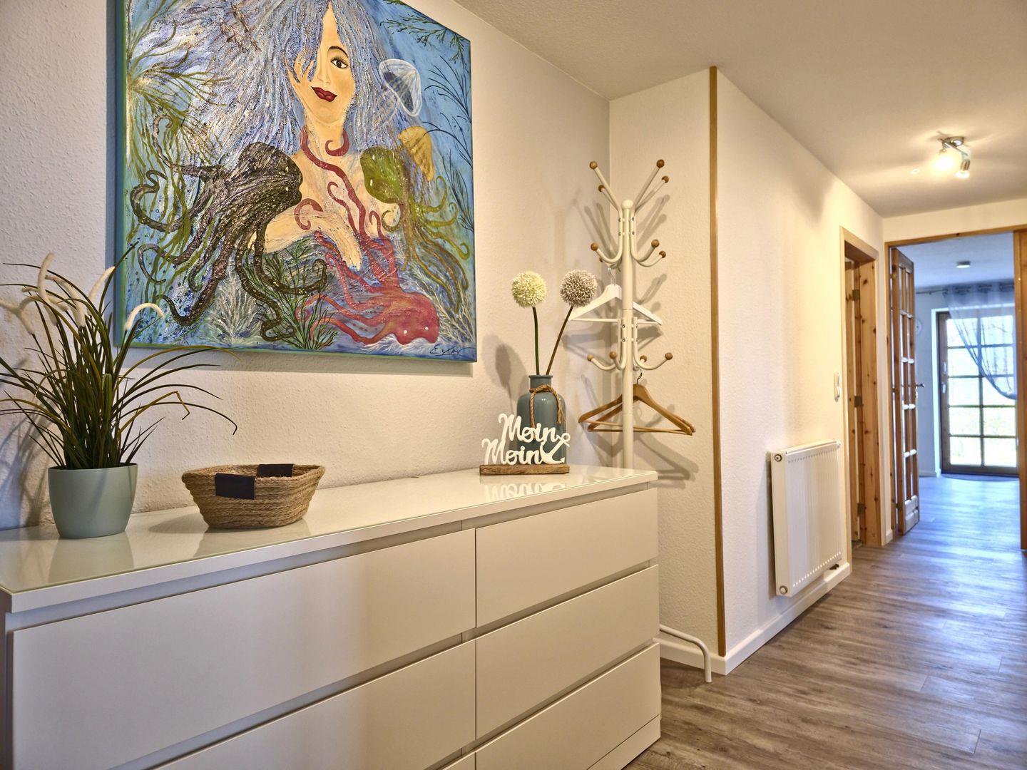 Euch begrüßt eine 3-Zimmer-Wohnung im Erdgeschoss, mit 2 Schlafzimmern, davon ein Schlafzimmer mit Doppelbett (160x200cm) und ein Schlafzimmer mit zwei Einzelbetten, ein großer Wohn-Essbereich mit offener Küche und Ausgang zur eigenen Terrasse mit Holzkohlegrill, sowie ein überaus großzügiges Duschbad mit Fenster.